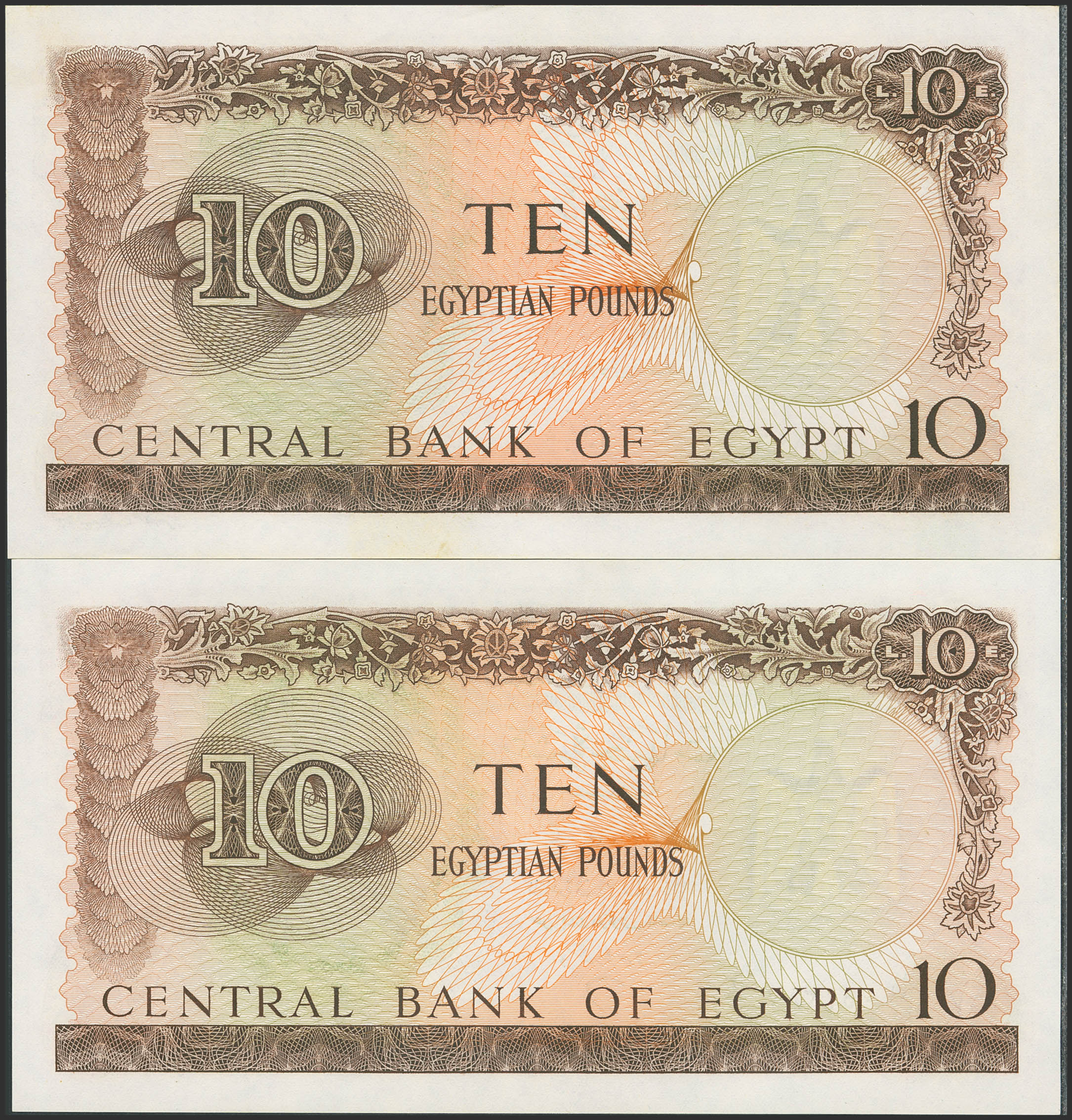 EGYPT. Lot of 2 notes of 10 Egyptian Pounds. 1961 and 1964. Central Bank. All known signatures. (Pick: 41). Uncirculated and More than Extremely Fine.