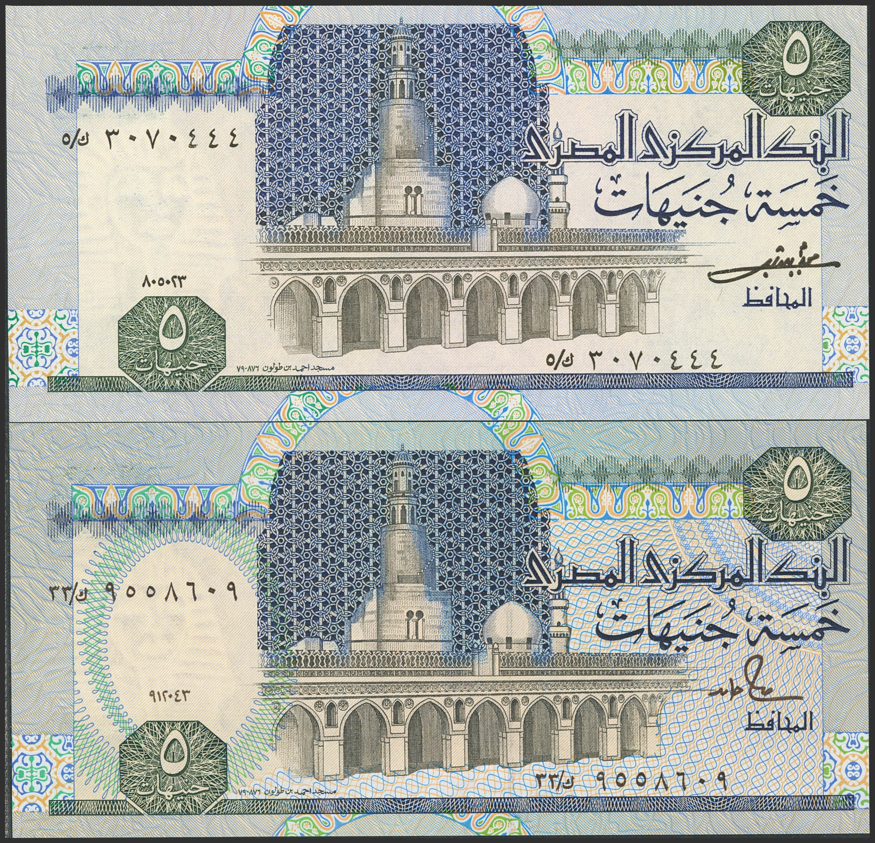 EGYPT. Lot of 2 notes of 5 Pounds. 1983 and 1993. Central Bank. (Pick: 56c, 93a). Uncirculated.