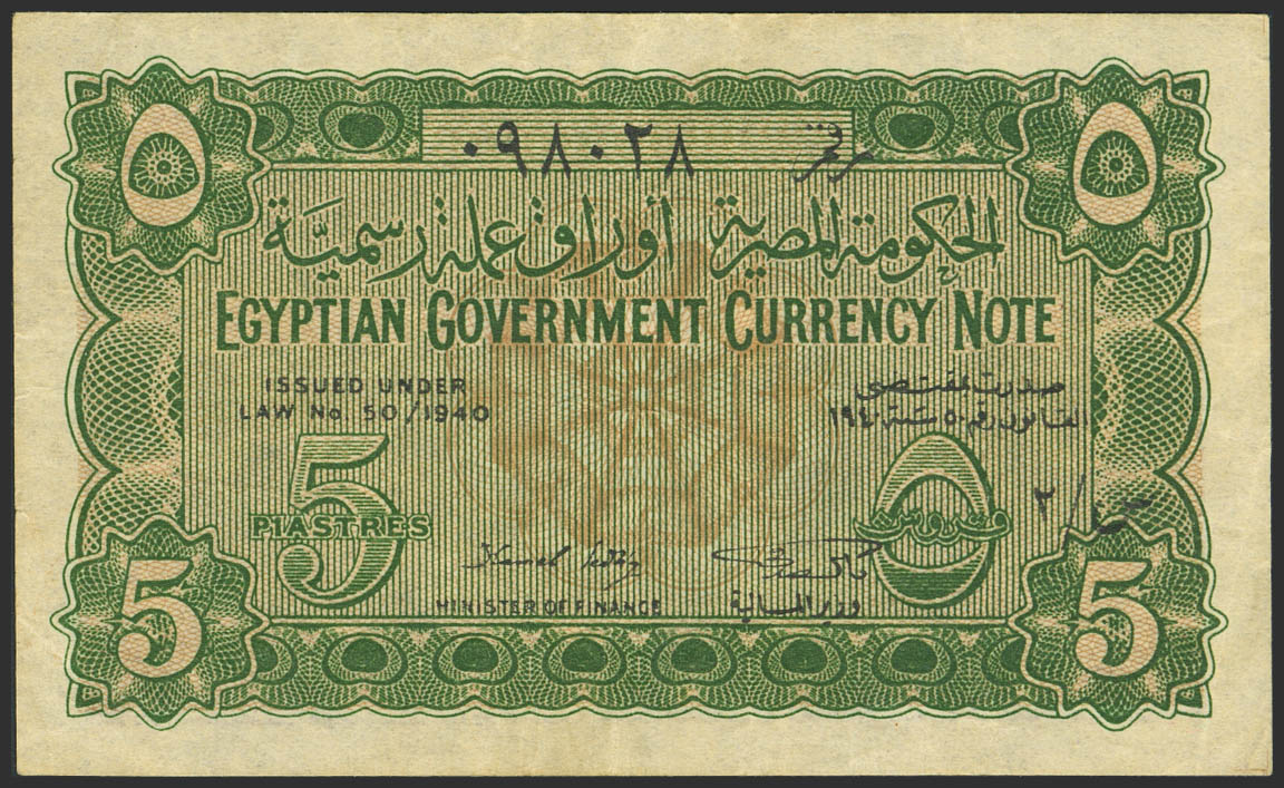 EGYPT. 5 Piastres. 1940. Government. (Pick: 163). More than Very Fine.