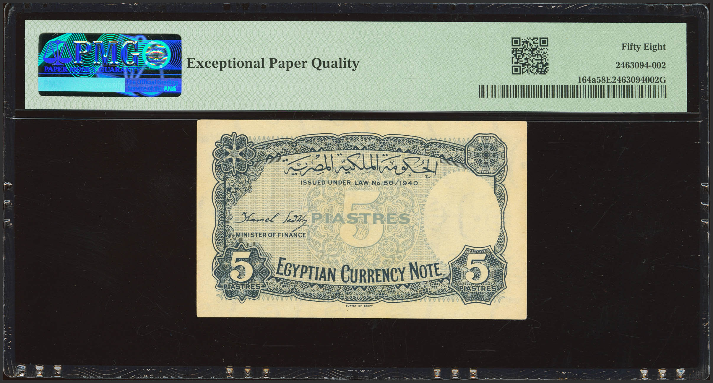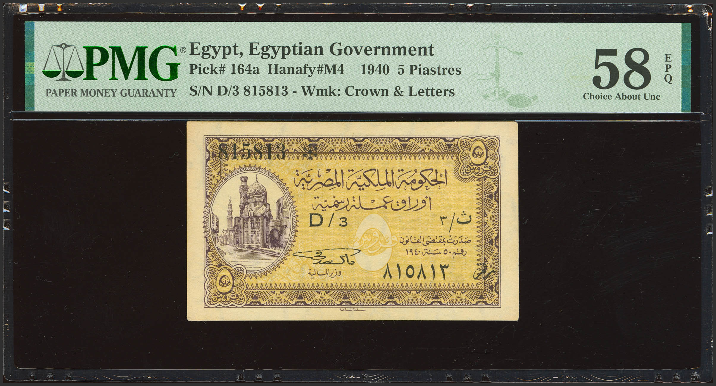 EGYPT. 5 Piastres. 1940. Royal Government. Signature of Kamel Sedky. (Pick: 164a). PMG58EPQ.