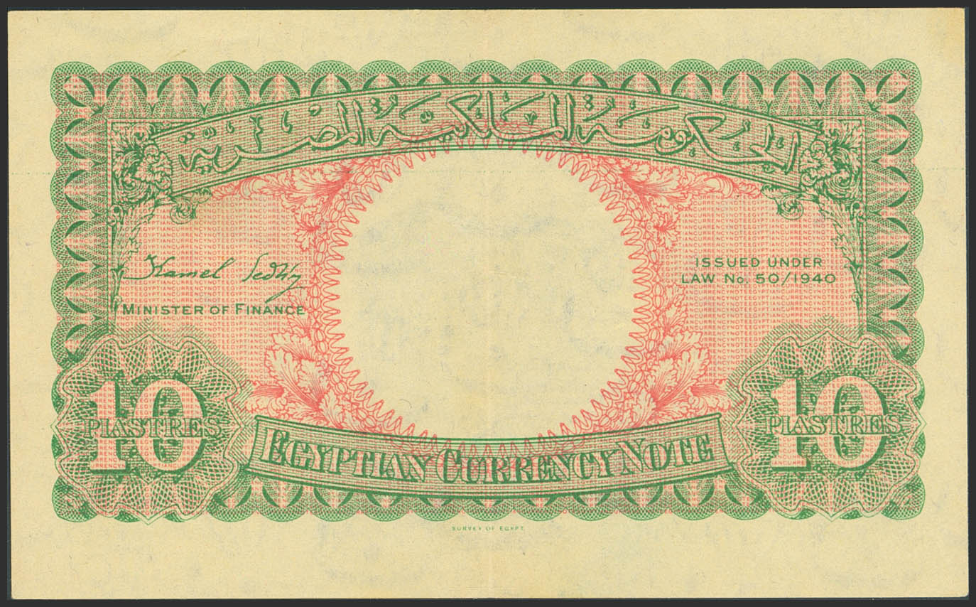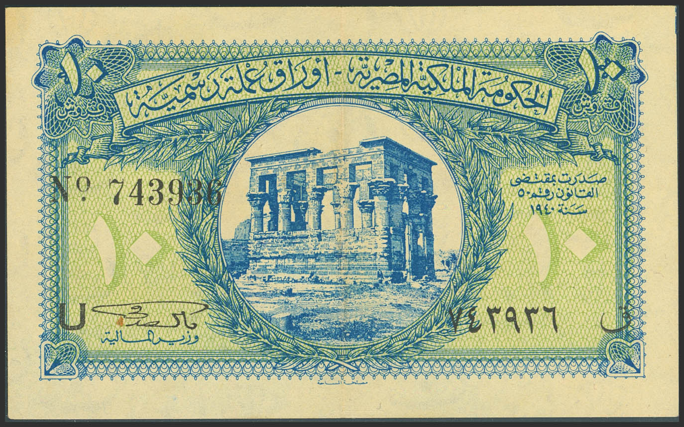 EGYPT. 10 Piastres. 1940. Government. (Pick: 167a). Very Fine.