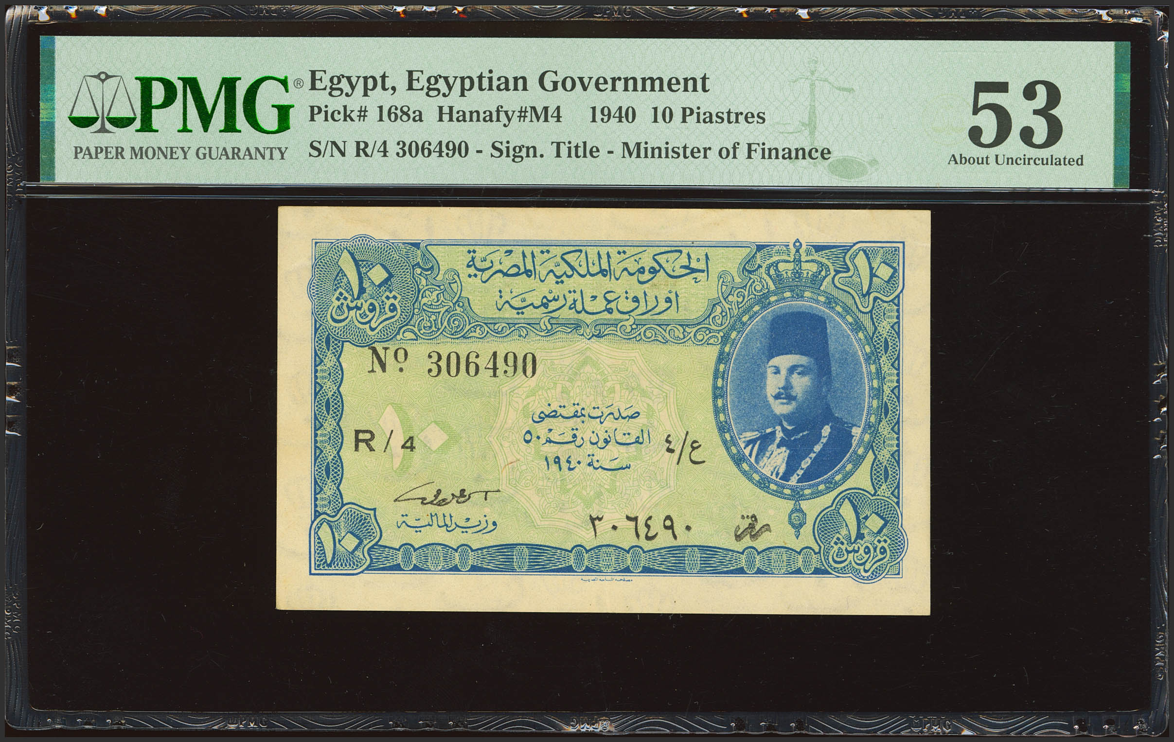 English EGYPT. 10 Piastres. May 27, 1917. Government. (Pick: 168a). PMG53.
