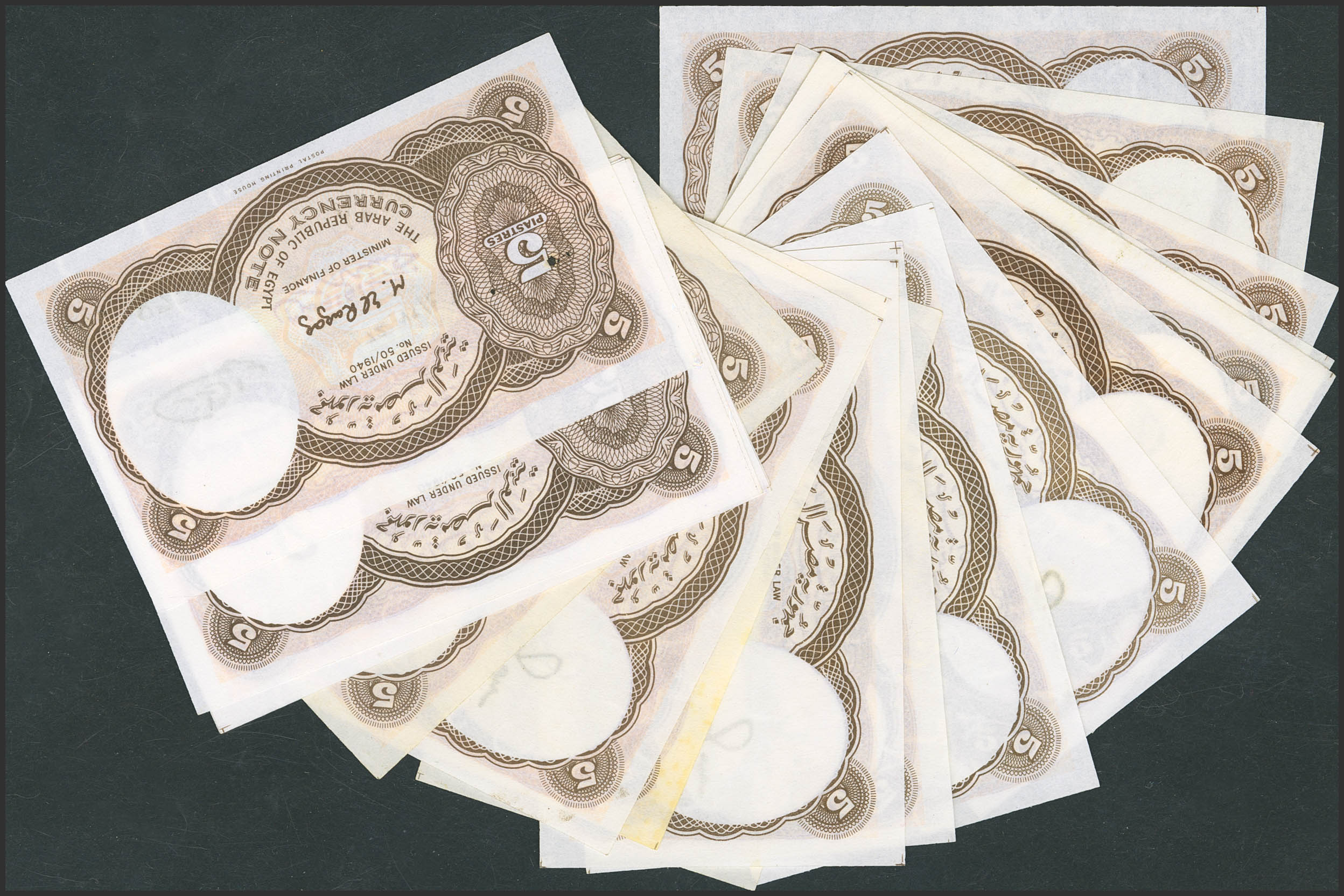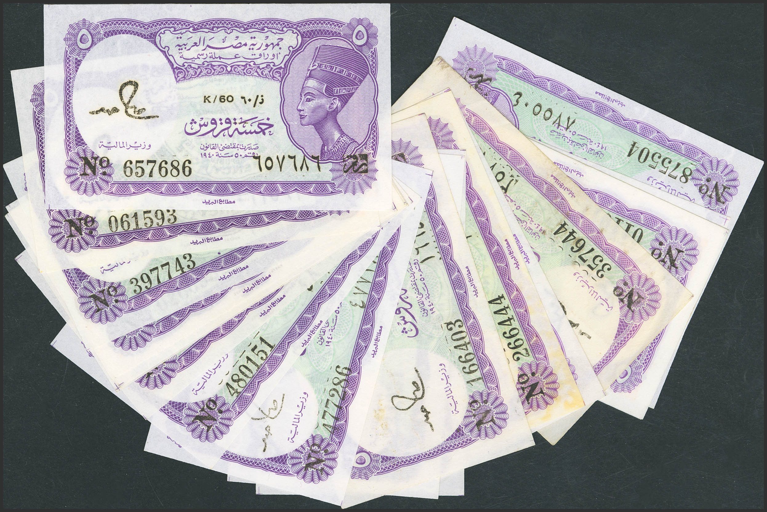 EGYPT. Lot of 19 notes of 5 Piastres. 1940. Arab Republic. Mixed subreferences. (Pick: 182). More than Extremely Fine to Uncirculated.