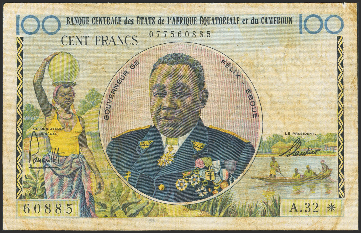 EQUATORIAL AFRICAN STATES. 100 Francs. (1961ca). Central Bank. Cameroon. (Pick: 1e). Flattened. Fine.