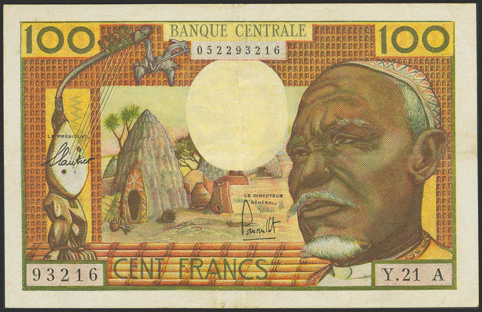 EQUATORIAL AFRICAN STATES. 100 Francs. (1963ca). Central Bank. Chad. (Pick: 3a). Extremely Fine.