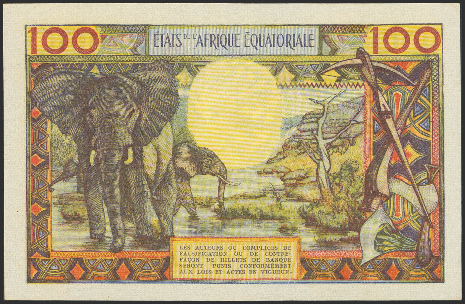 English EQUATORIAL AFRICAN STATES. 100 Francs. (1963ca). Central Bank. Central African Republic. (Pick: 3b). Extremely Fine.