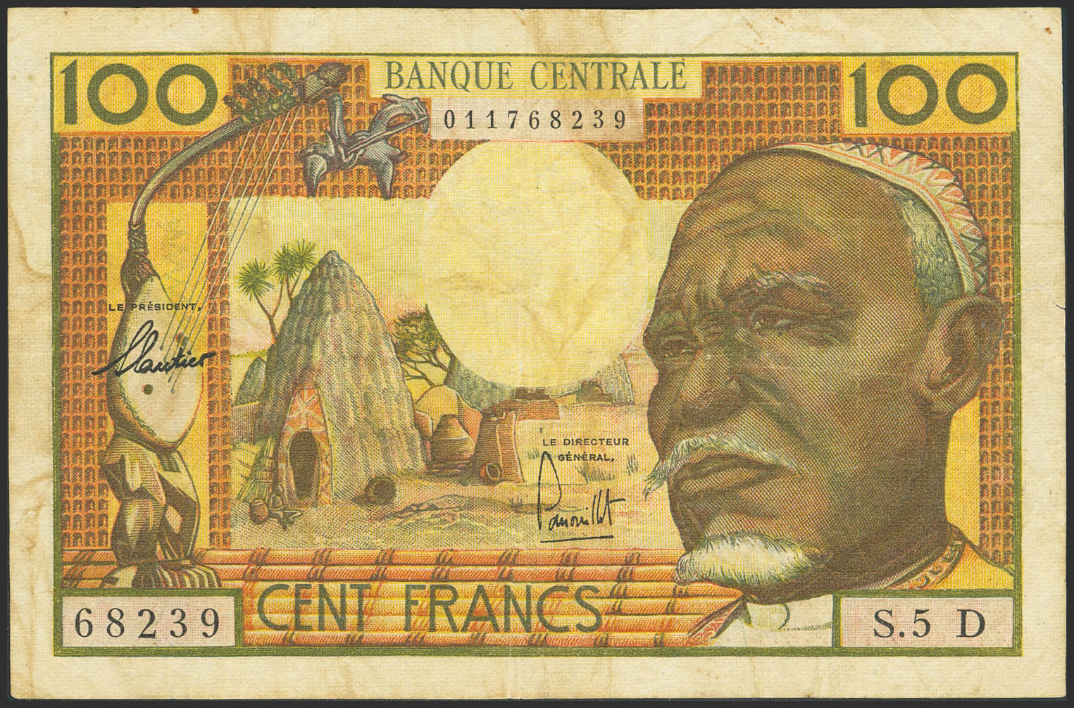 EQUATORIAL AFRICAN STATES. 100 Francs. (1963ca). Central Bank. Gabon. (Pick: 3d). More than Fine.