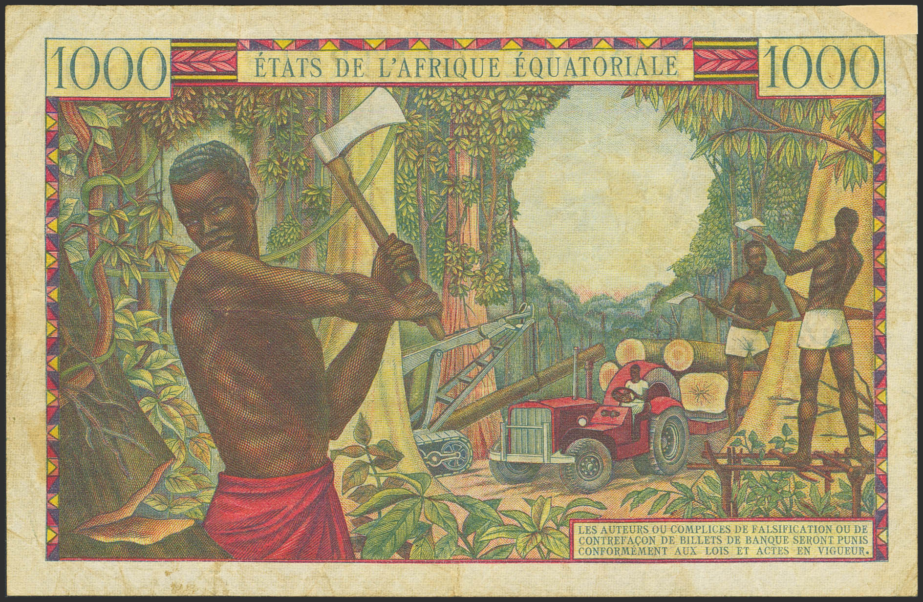 EQUATORIAL AFRICAN STATES. 1000 Francs. (1963ca). Central Bank. Congo. (Pick: 5c). Adhesive paper added over missing corner. More than Fine.