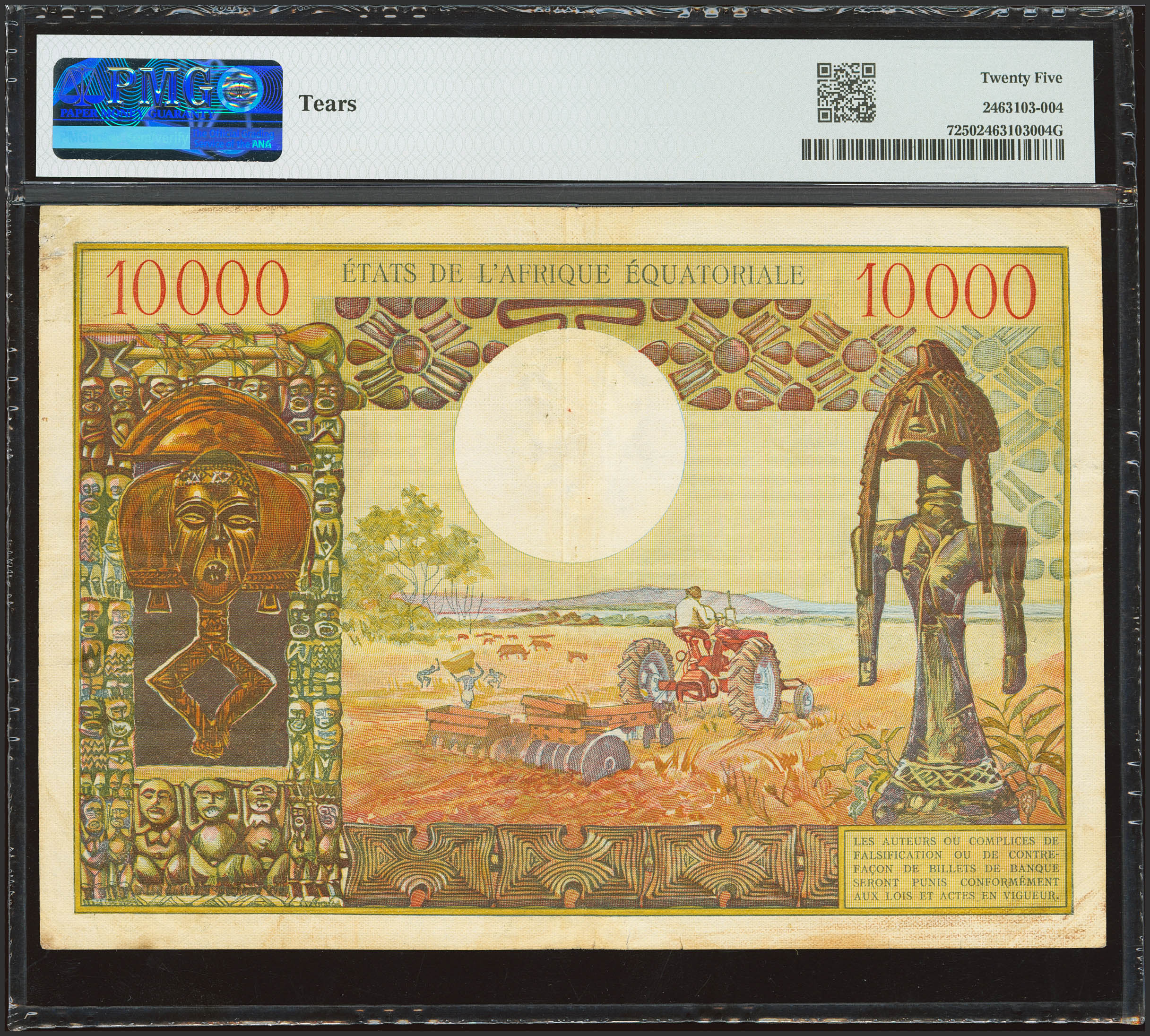 EQUATORIAL AFRICAN STATES. 10,000 Francs. (1968ca). Central Bank. (Pick: 7a). PMG25 (tears).