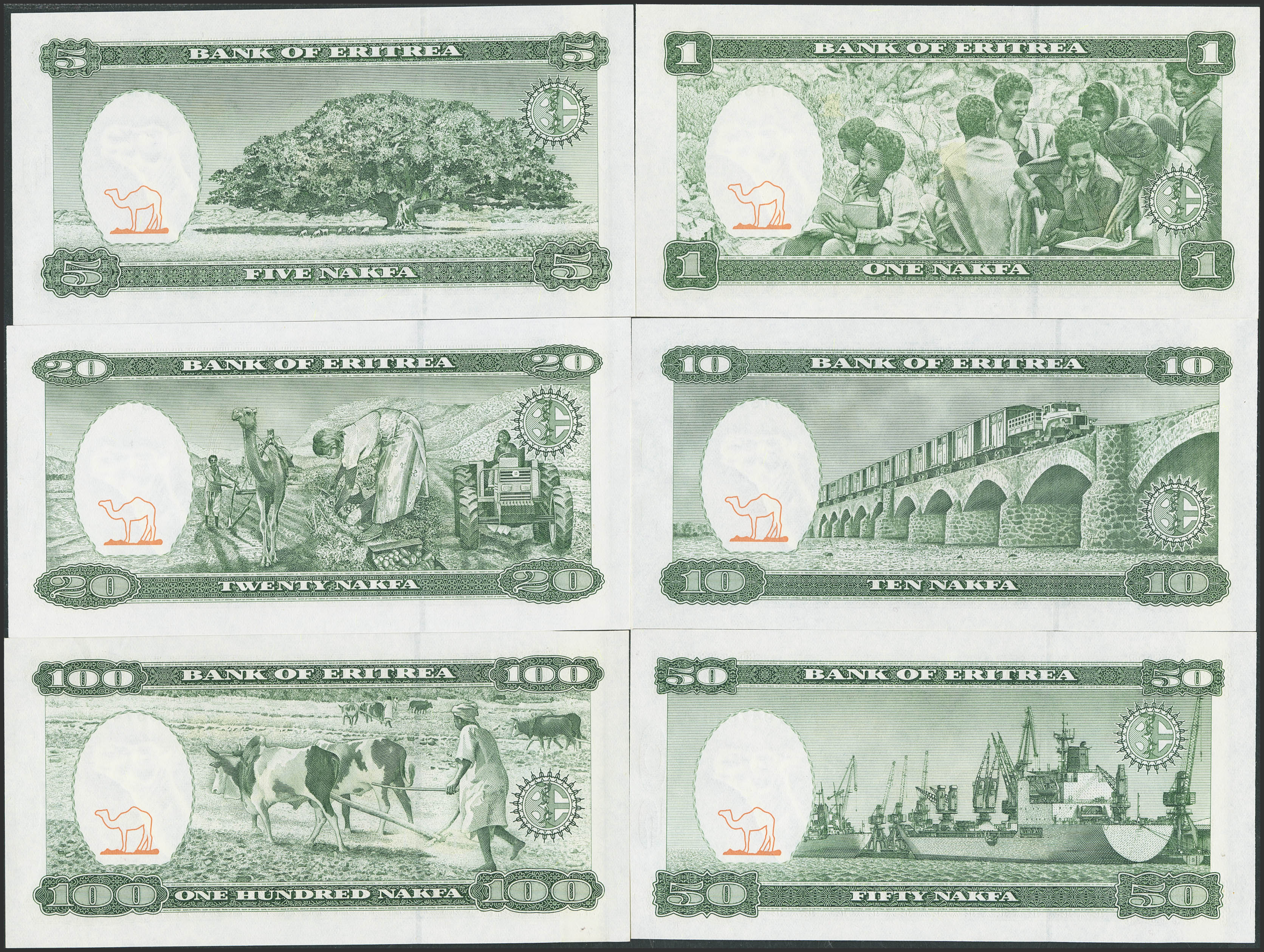 ERITREA. Complete set from 1 to 100 Nafka. 1997. Bank of Eritrea. (Pick: 1, 2, 3, 4, 5, 6). Uncirculated.