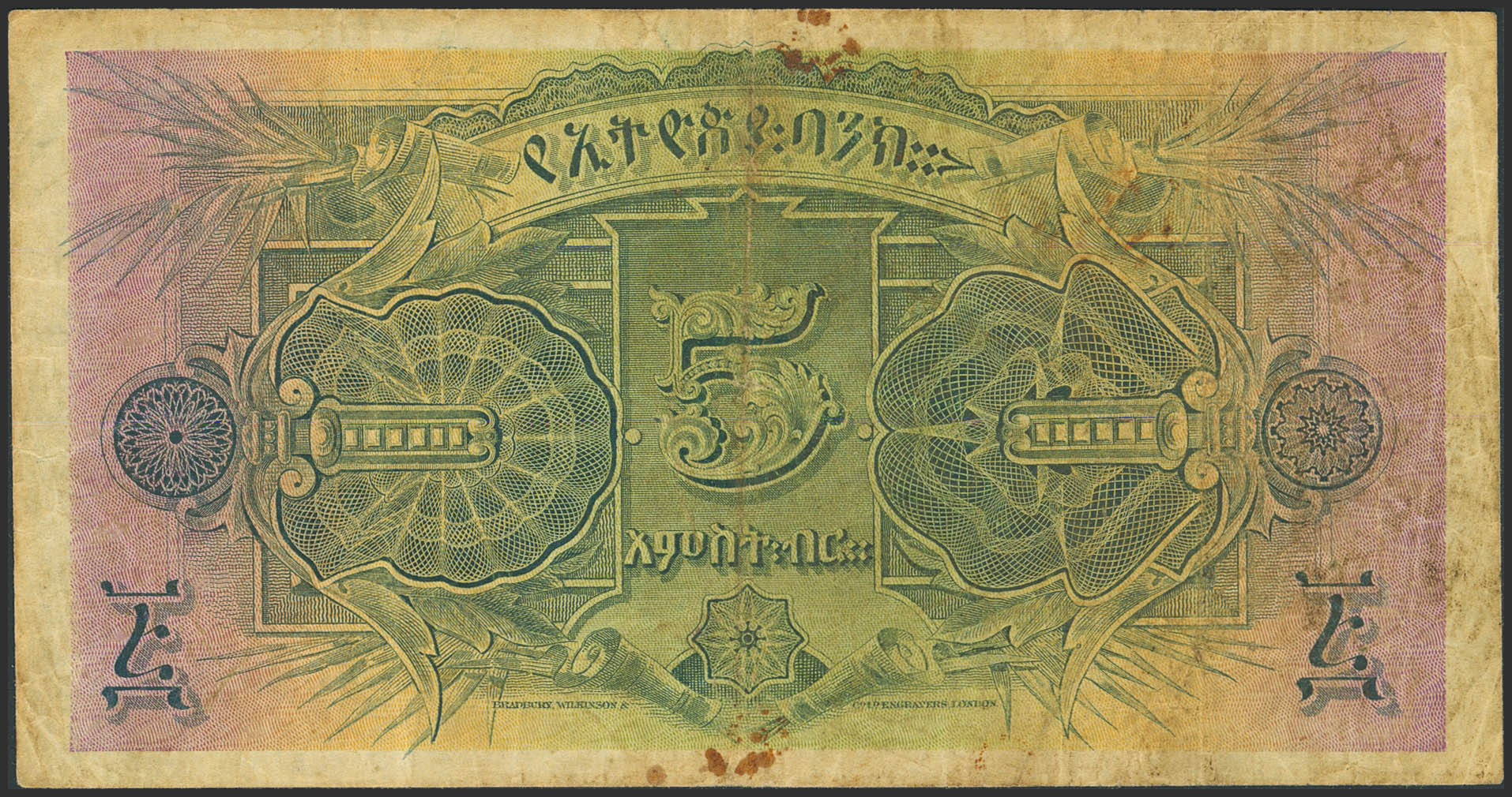 ETHIOPIA. 5 Thalers. 29 April 1933. Bank of Ethiopia. (Pick: 7). Stains. More than Fine.