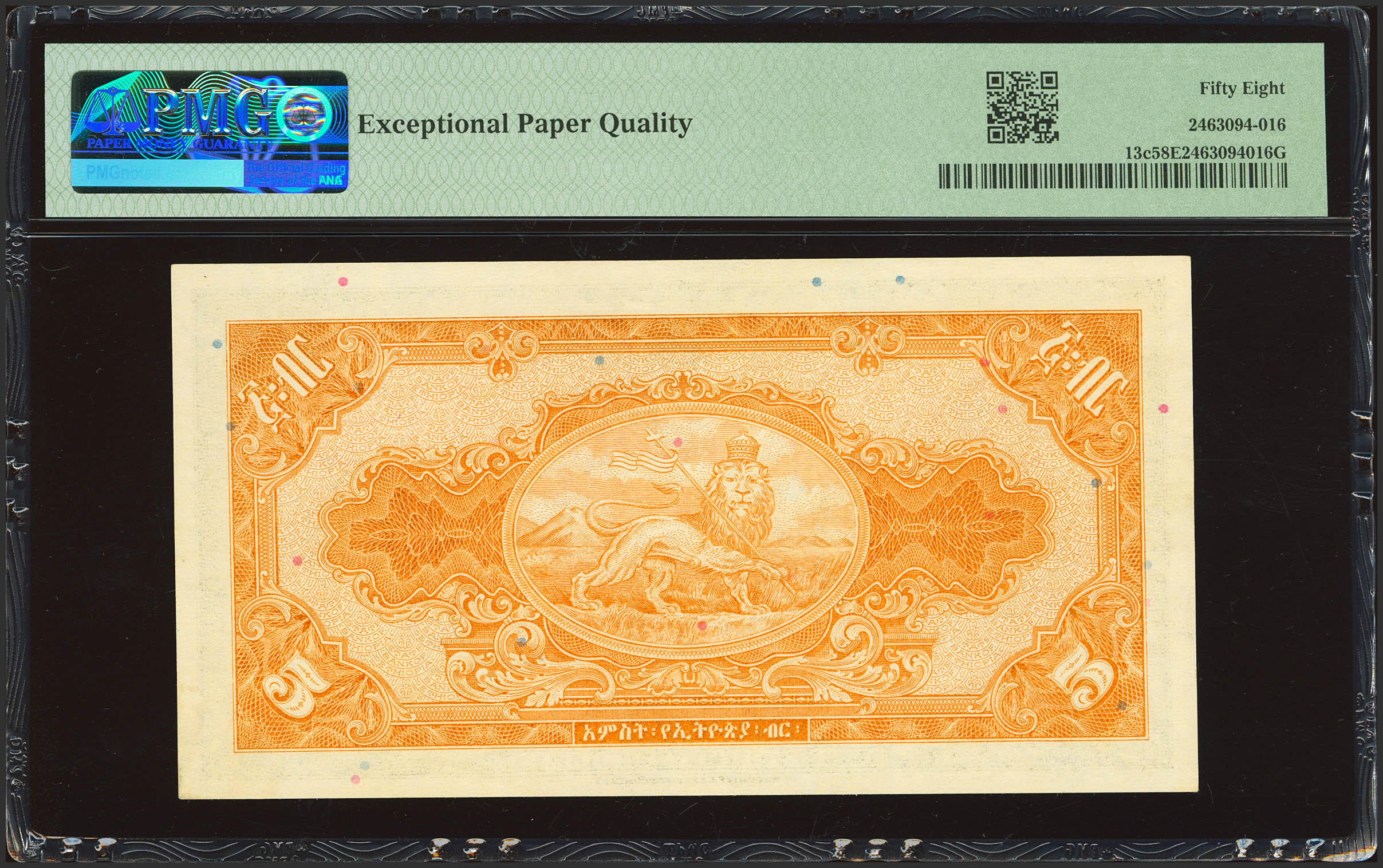 ETHIOPIA. 5 Ethiopian Dollars. (1945ca). State Bank. (Pick: 13c). PMG58EPQ.