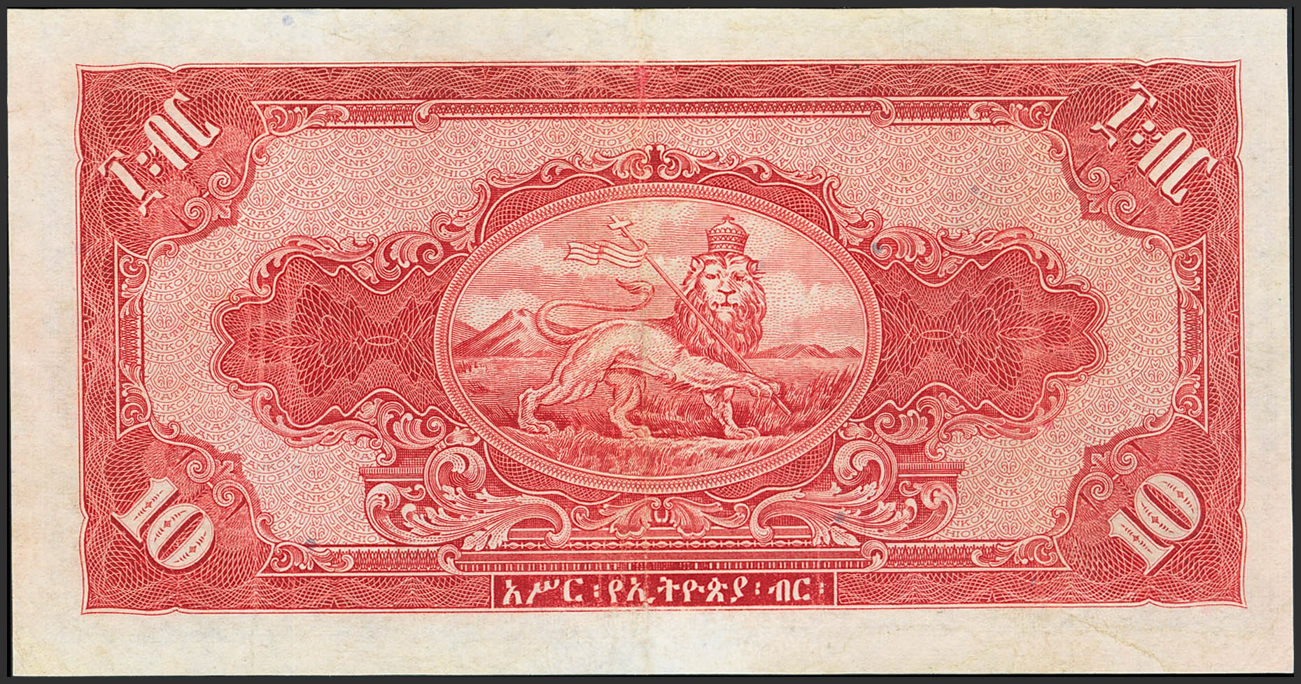 ETHIOPIA. 10 Ethiopian Dollars. (1945ca). State Bank. (Pick: 14c). Washed and flattened. Extremely Fine.