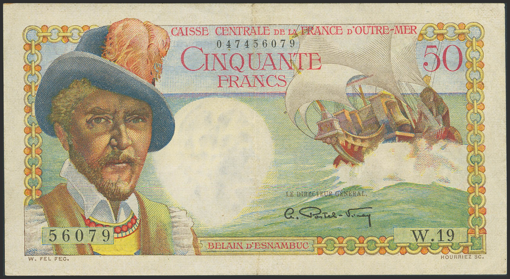 FRENCH EQUATORIAL AFRICA. 50 Francs. (1947ca). Caisse Centrale de la France d'Outre-Mer. (Pick: 23). Pinholes. More than Extremely Fine.