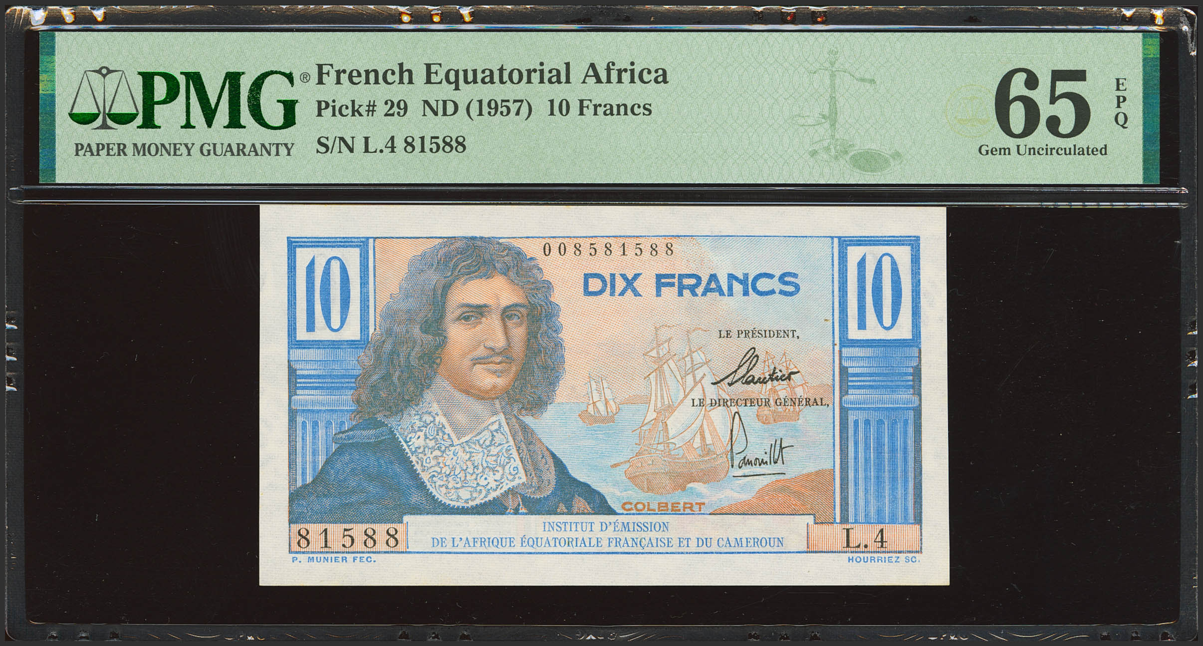 FRENCH EQUATORIAL AFRICA. 10 French. (1957ca). Institut d'Emission de l'Afrique Equatorial Francaise et du Cameroun. (Pick: 29). PMG65EPQ.
