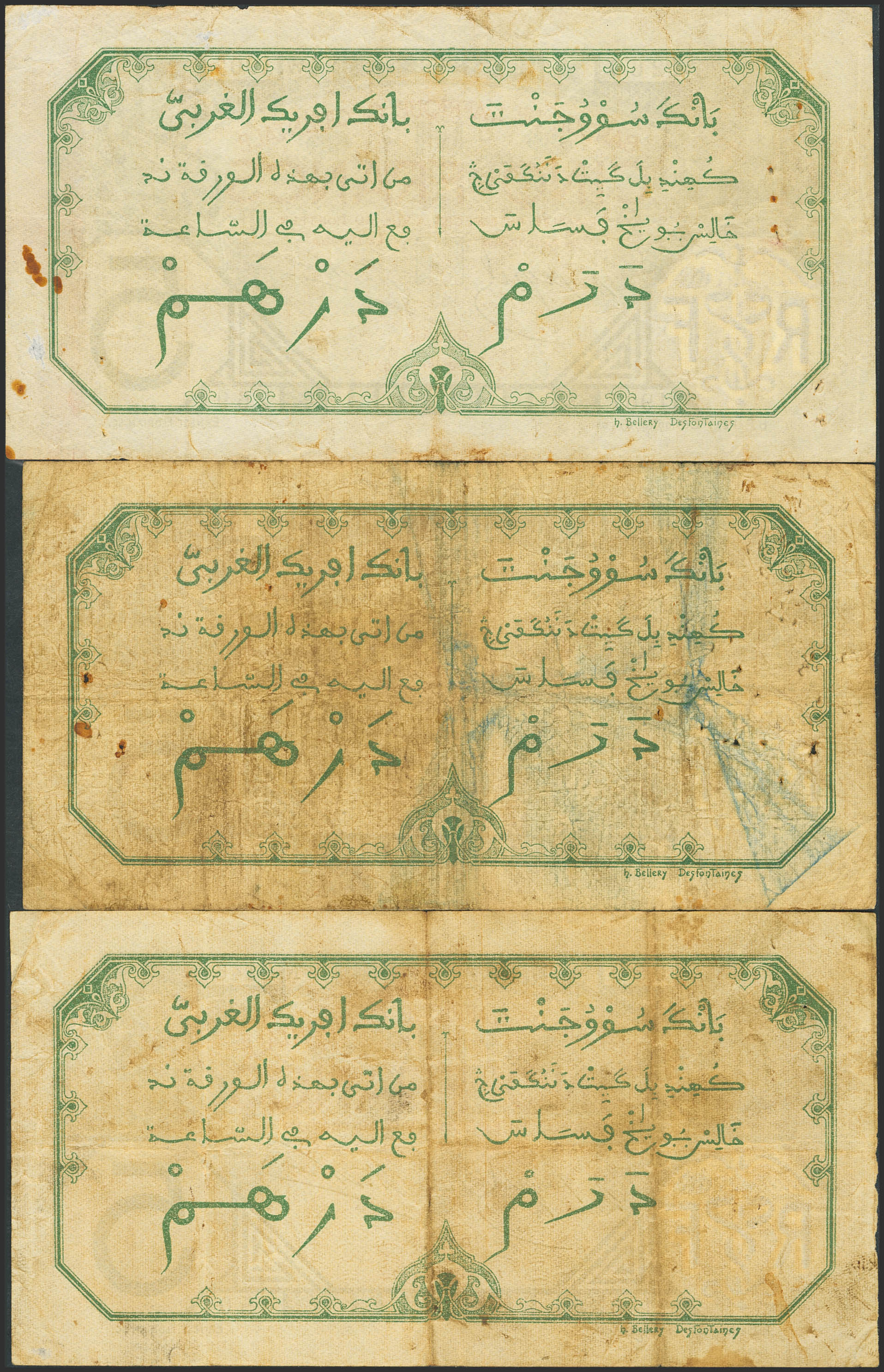FRENCH WEST AFRICA. Lot of 3 notes of 5 Francs. 1922 and 1924. Banque de l'Afrique Occidentale. Dakar. (Pick: 5Bb). Pinholes. Very Fine (2) and Fine (1).