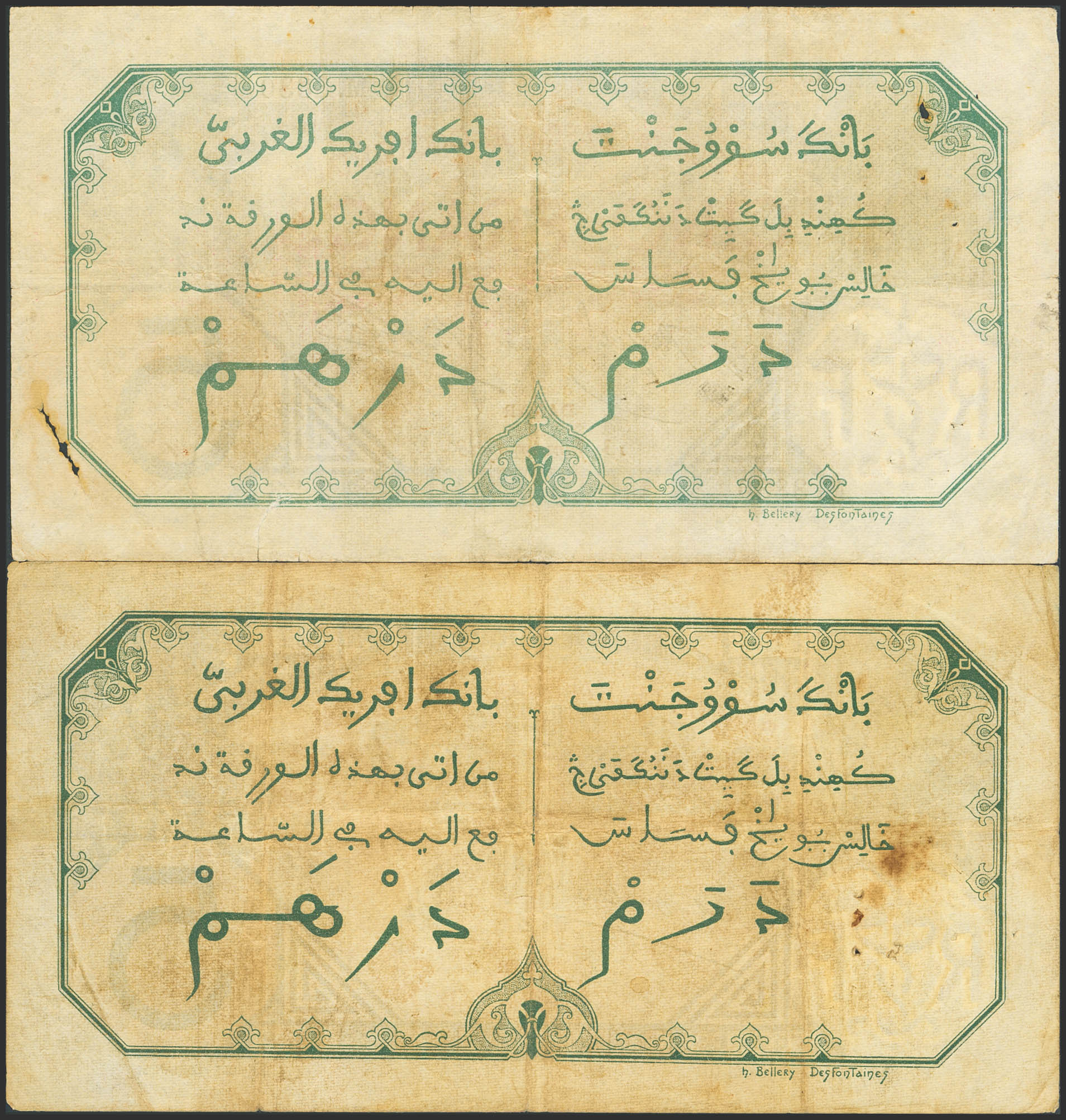 FRENCH WEST AFRICA. Lot of 2 notes of 5 Francs. 1928 and 1932. Banque de l'Afrique Occidentale. Dakar. (Pick: 5Be, 5Bf). Rust, pinholes. Very Fine.