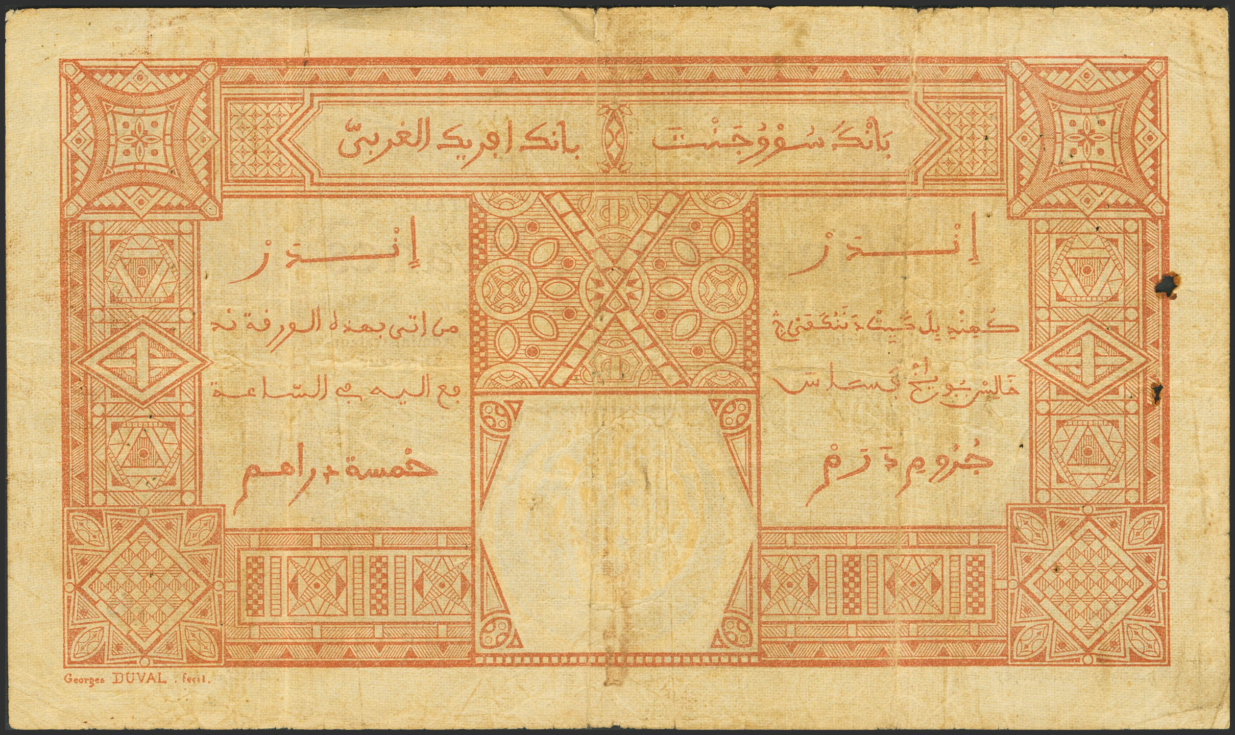 FRENCH WEST AFRICA. 25 Francs. 10 June 1926. Banque de l'Afrique Occidentale. Dakar. (Pick: 7Bc). Wormhole and pinholes. Very Fine.