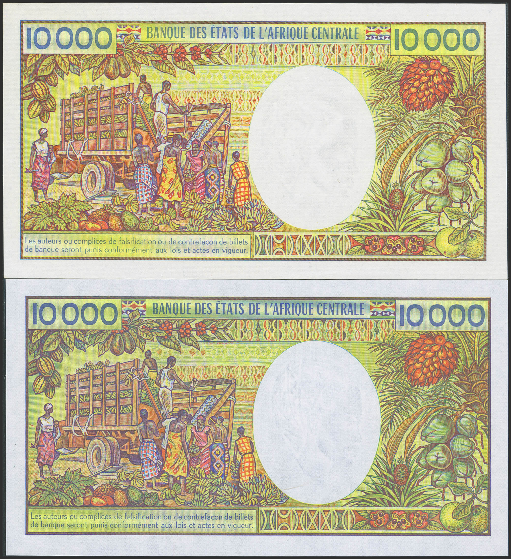 GABON. Lot of 2 notes of 10000 Francs. (1984ca). Banque des Etats de l'Afrique Centrale. Republique Gabonaise. (Pick: 7a, 7b). Handling marks. Less than Uncirculated.