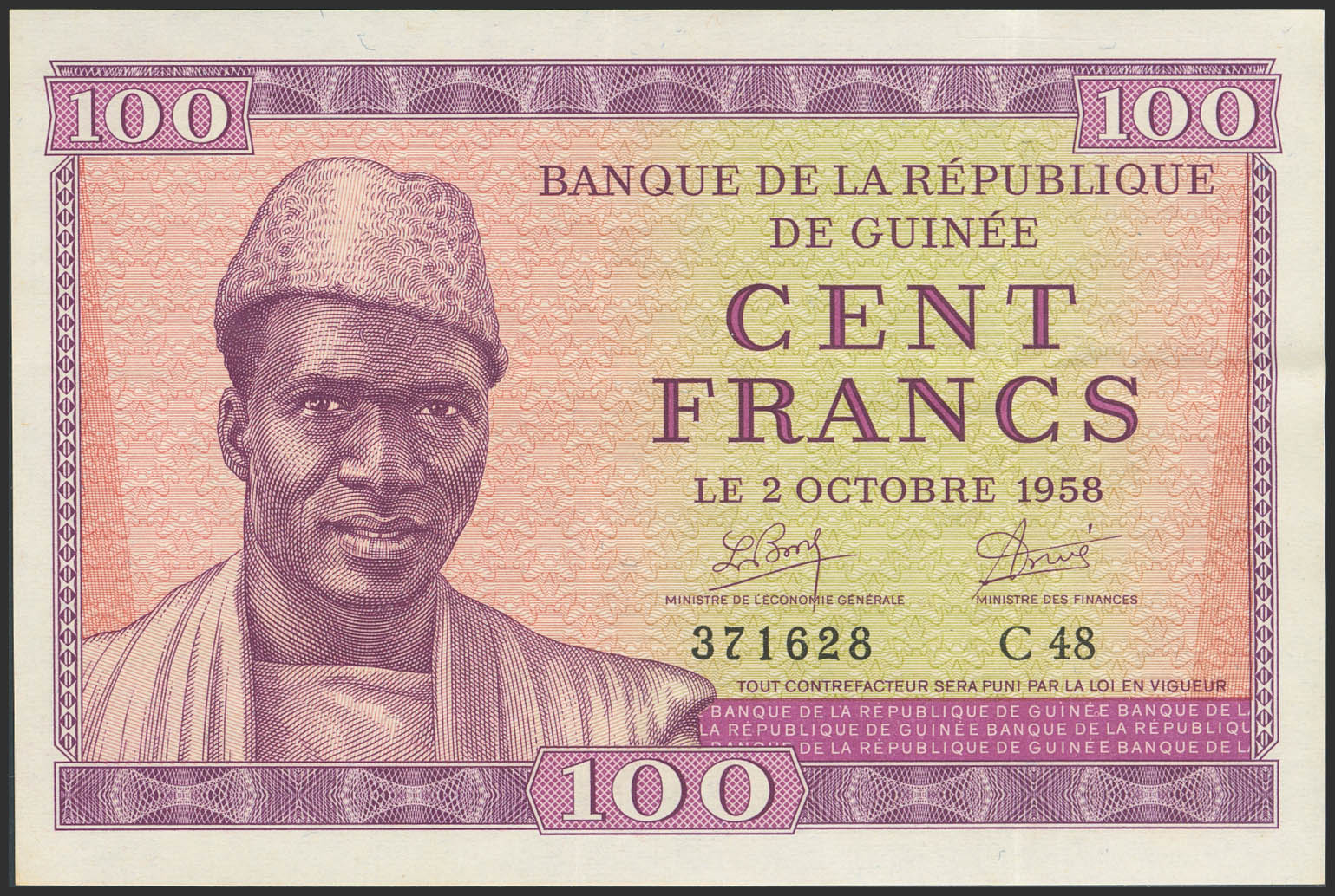GUINEA. 100 Francs. 2 October 1958. Banque de la Republique. (Pick: 7). Extremely Fine.