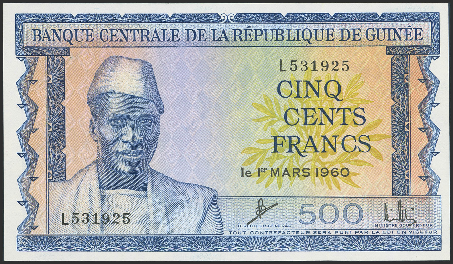 GUINEA. 500 Francs. 1 March 1960. Banque de la Republique. (Pick: 14a). Less than Uncirculated.