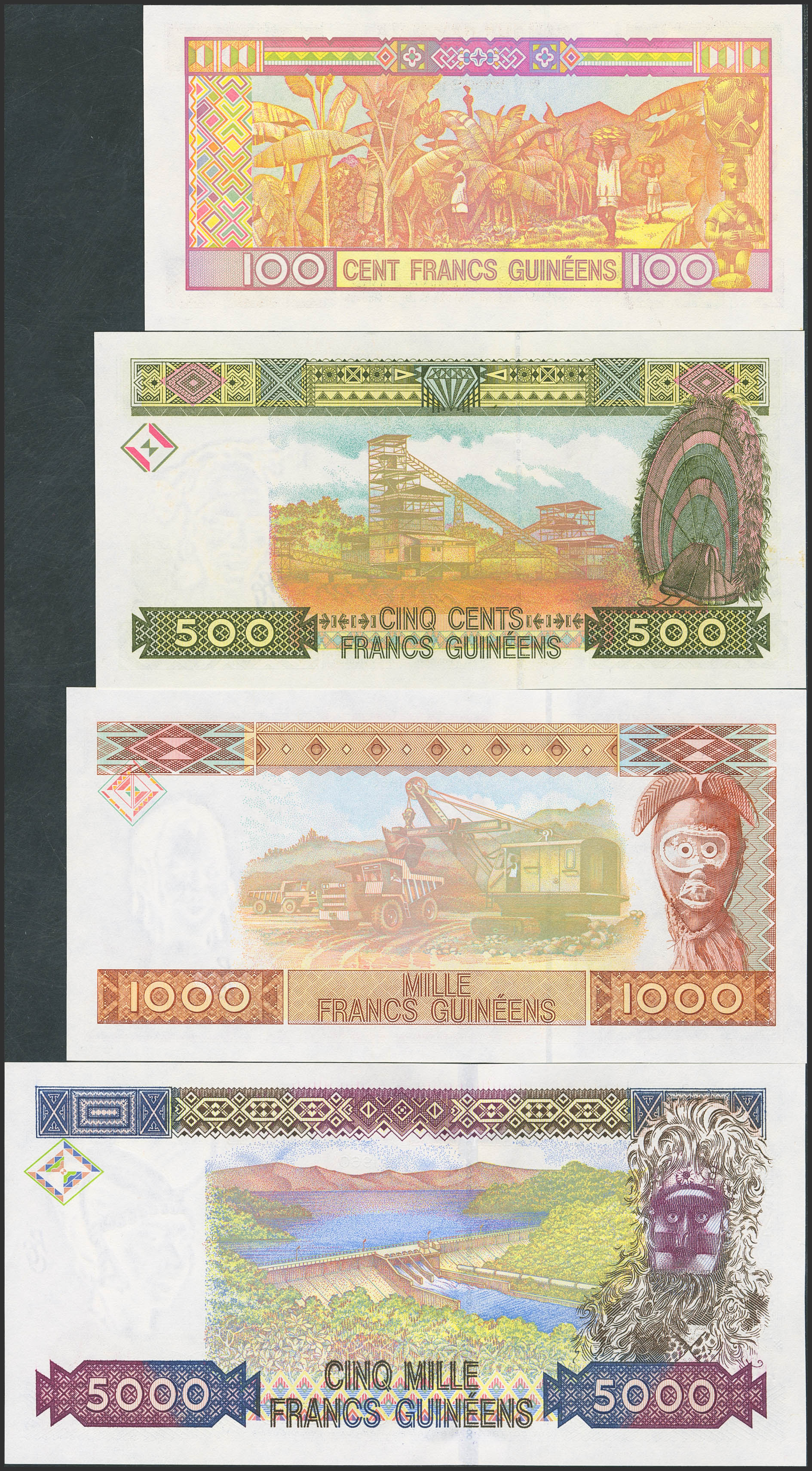 GUINEA. Complete set from 100 to 5000 Francs. 1998. Central Bank. (Pick: 35a, 36a, 37, 38). Uncirculated.