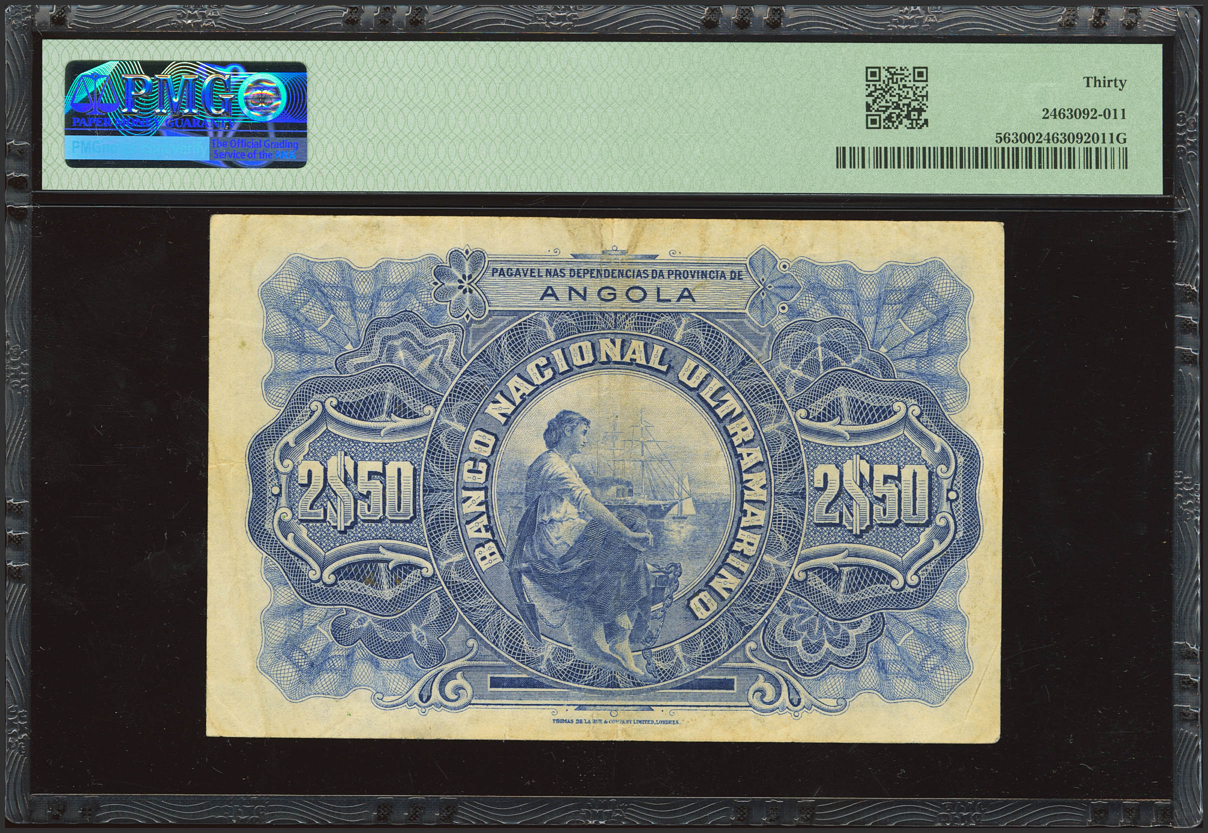 ANGOLA. 2.5 Shields. January 1, 1921. Banco Nacional Ultramarino. (Pick: 56). PMG30.