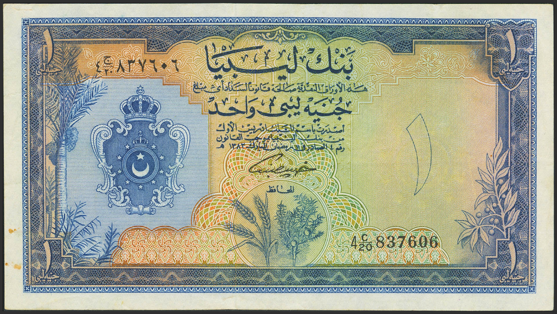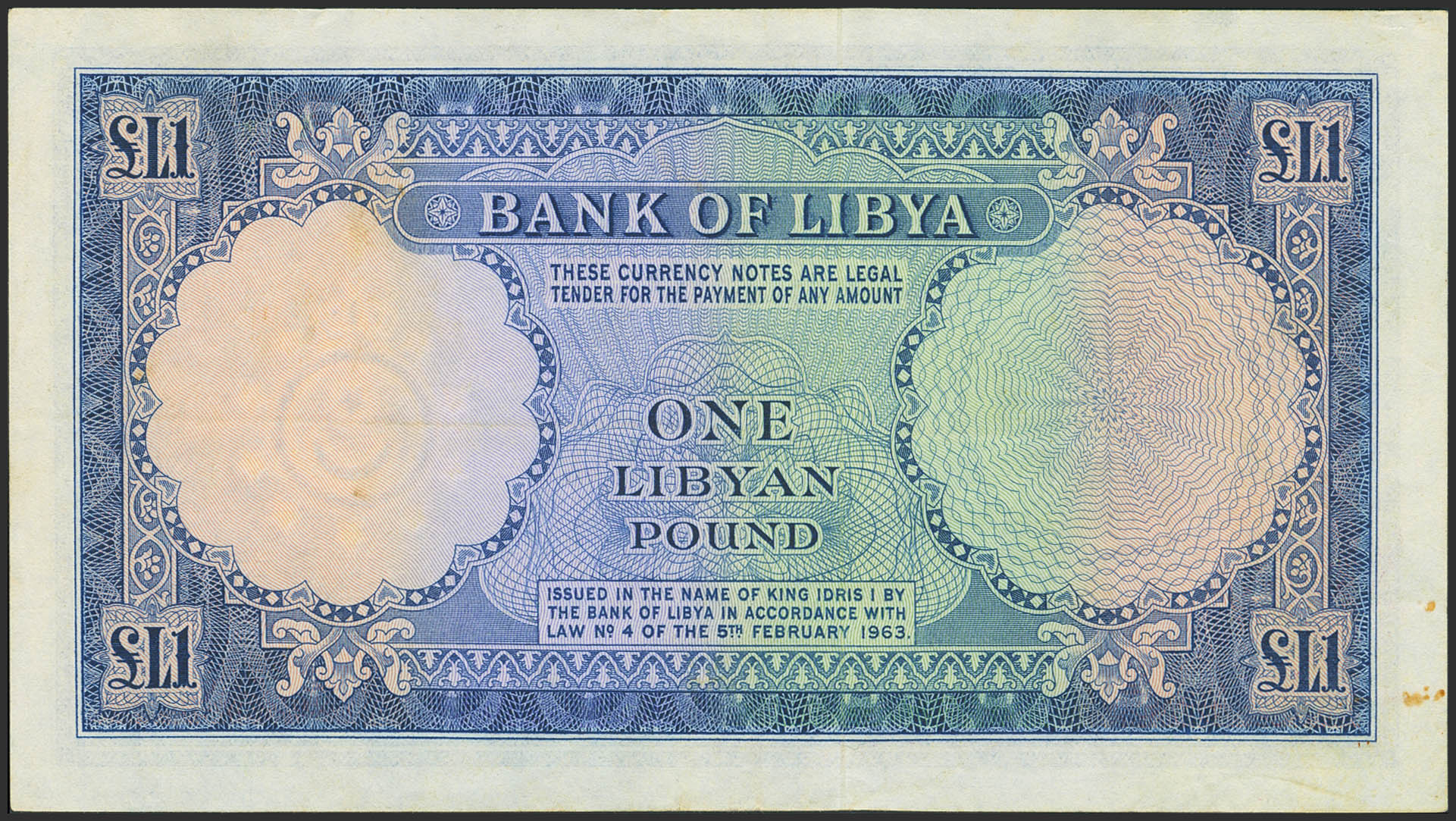 LIBYA. 1 Libyan Pound. 5 February 1963. Bank of Libya. (Pick: 25). Flattened. More than Very Fine.