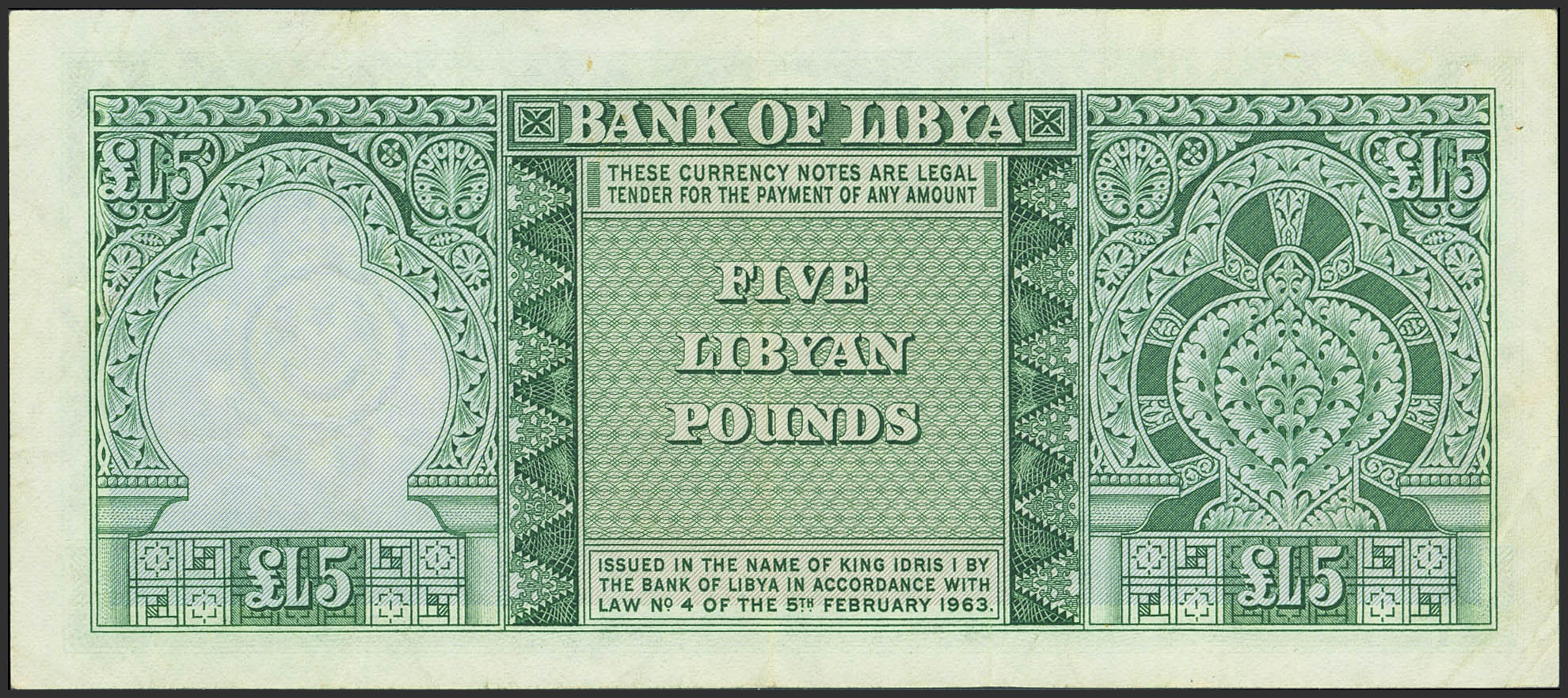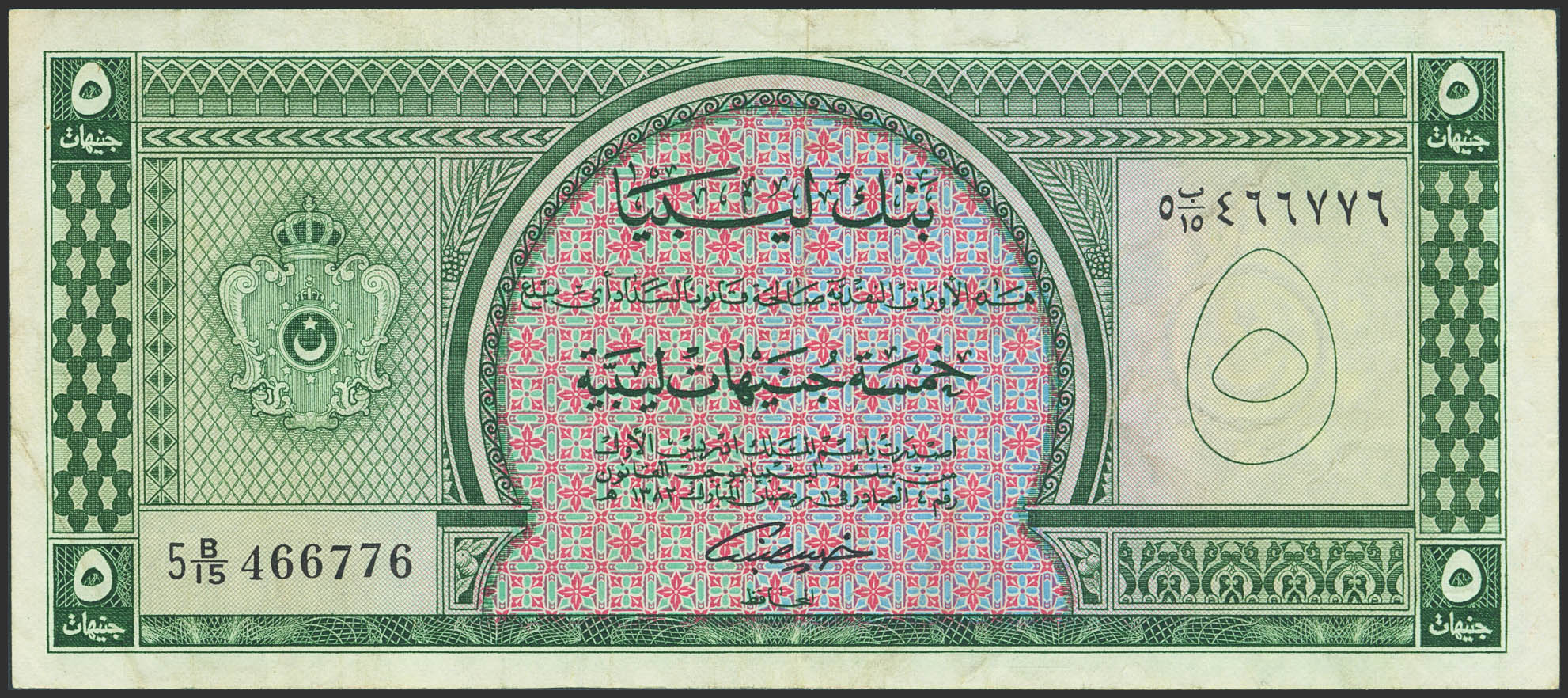 LIBYA. 5 Libyan Pounds. 5 February 1963. Bank of Libya. (Pick: 31). More than Very Fine.
