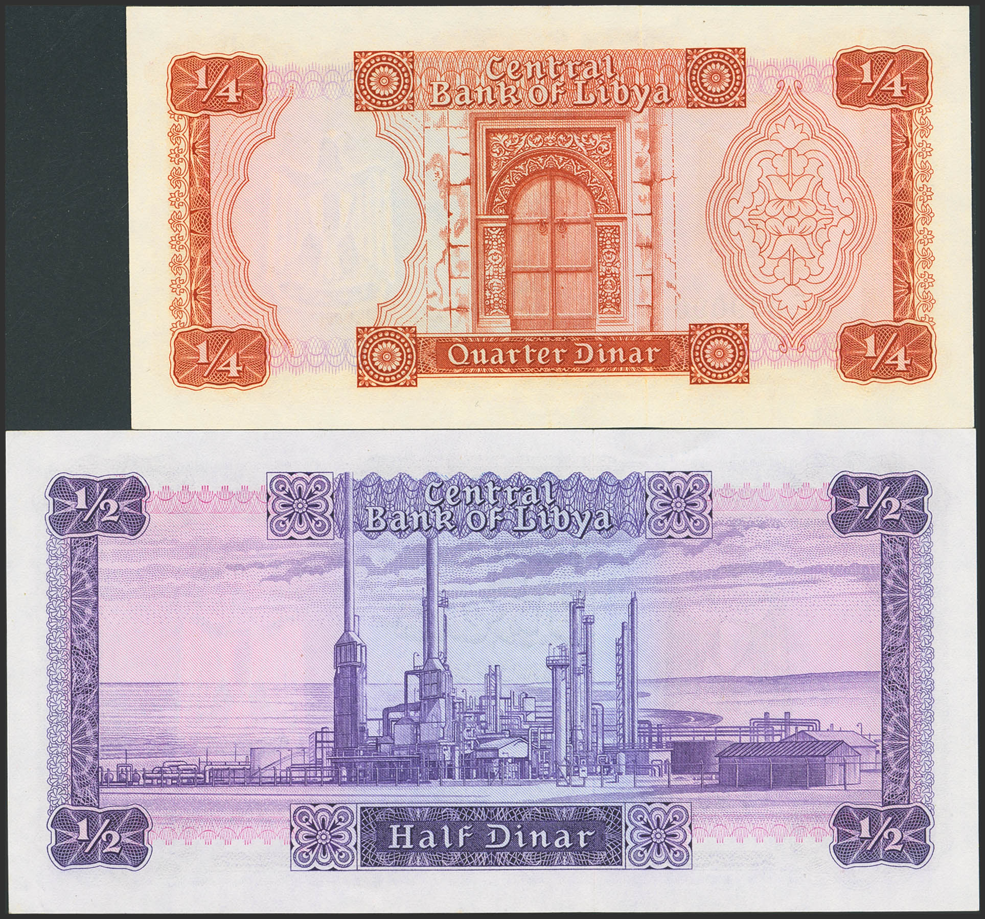 LIBYA. Lot of 2 notes of ¼ and ½ Dinar. (1972ca). Central Bank. (Pick: 33b, 34b). Almost Uncirculated.