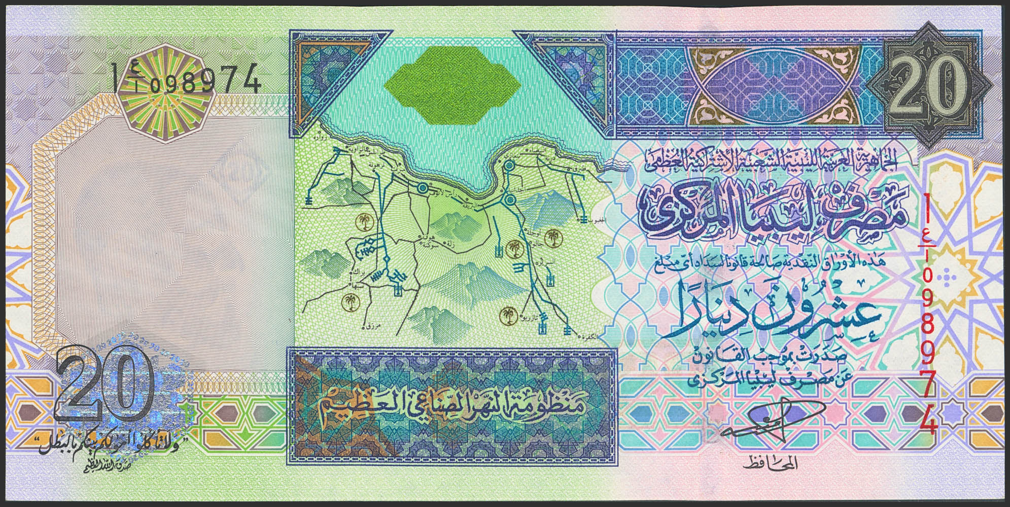 LIBYA. 20 Dinars. (2002ca). Central Bank. (Pick: 67a). Uncirculated.