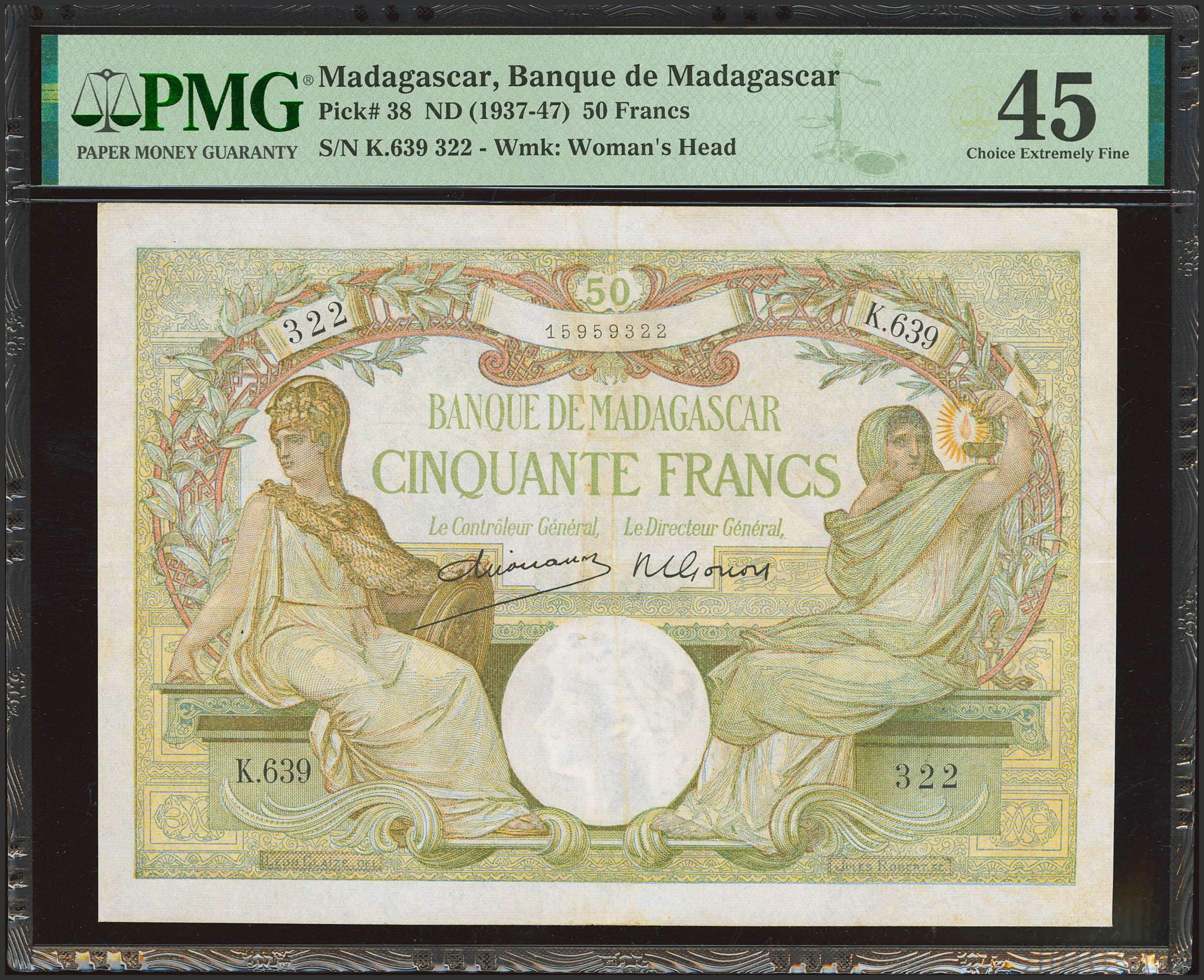 English MADAGAUncirculatedAR. 50 Francs. (1937ca). Bank of Madagascar. (Pick: 38). PMG45.