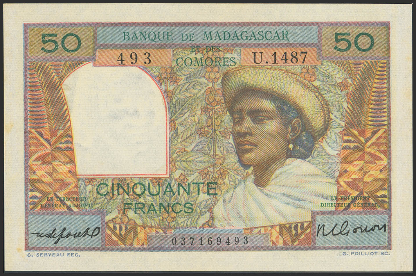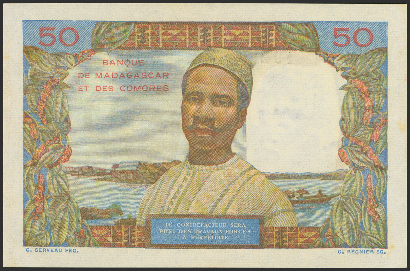 MADAGAUncirculatedAR. 50 Francs. (1950ca). Banque de Madagascar et des Comores. (Pick: 45b). Less than Uncirculated.