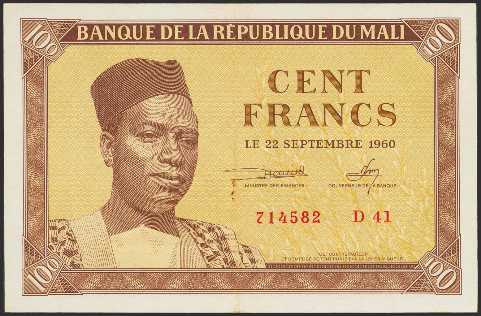 MALI. 100 Francs. 22 September 1960. Banque de la Republique. (Pick: 2). Almost Uncirculated.