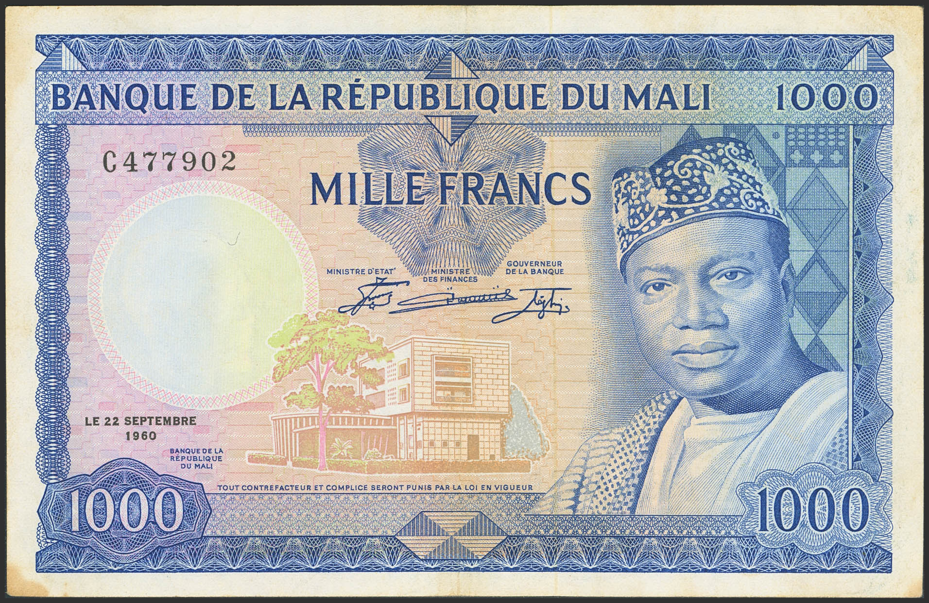 MALI. 1000 Francs. 22 September 1960. Banque de la Republique. (Pick: 9). Flattened. More than Extremely Fine.