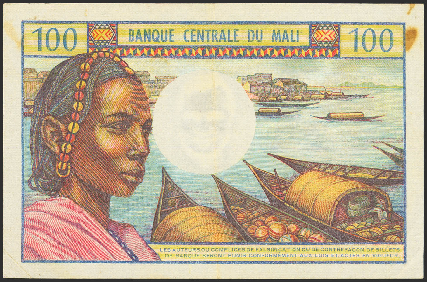 MALI. 100 Francs. (1972ca). Central Bank. (Pick: 11). Stains. More than Extremely Fine.