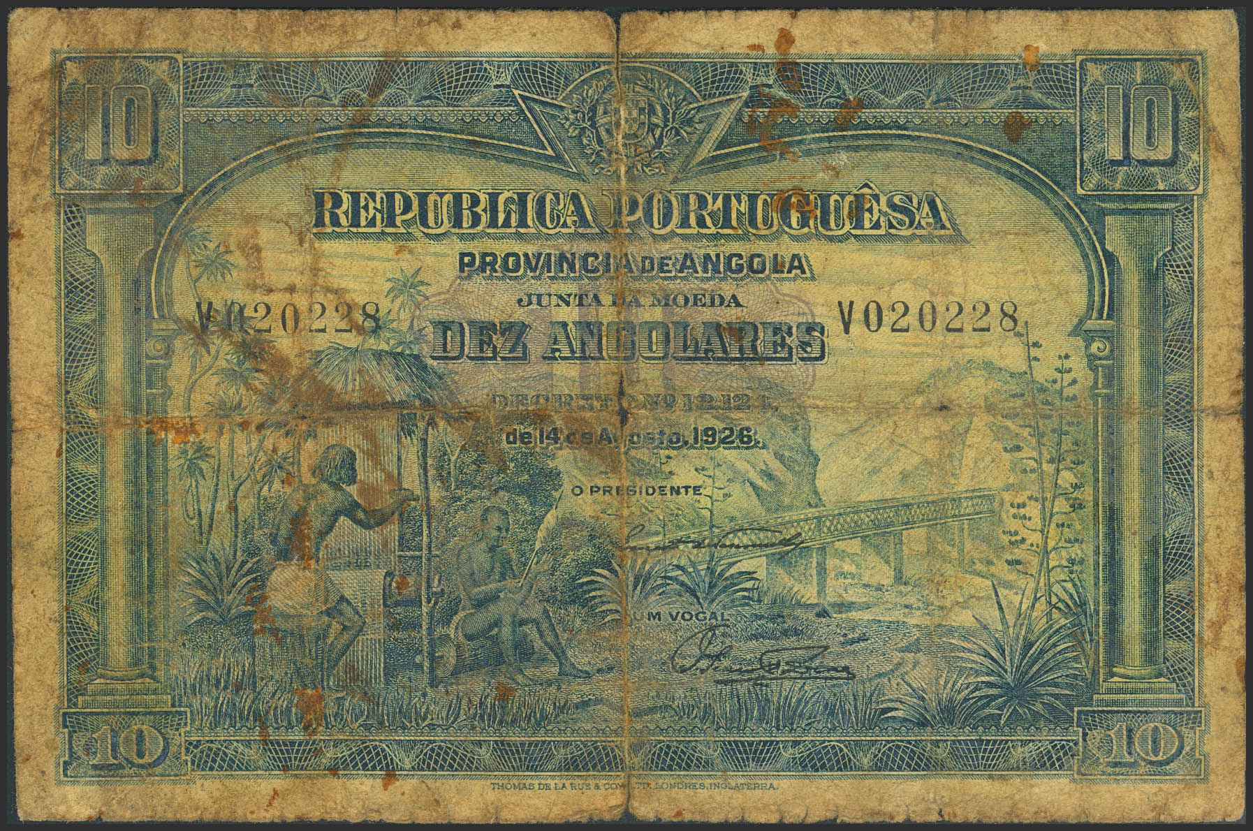 ANGOLA. 10 Angolars. 14 August 1926. Province of Angola. Moeda Board. (Pick: 67). Poor.