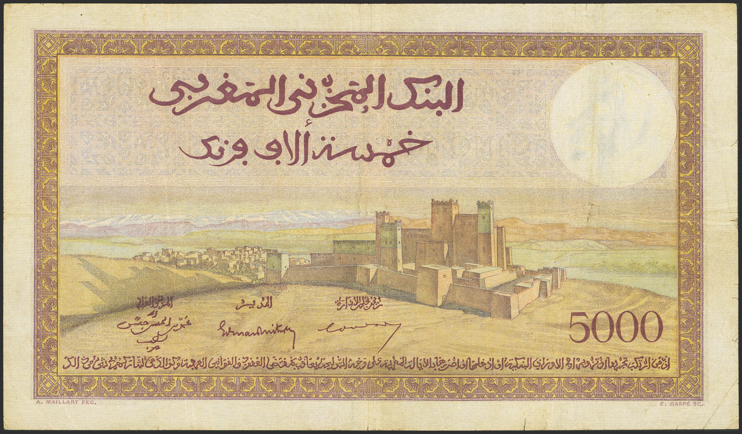MOROCCO. 5000 Francs. 9 January 1950. Banque d'Etat du Maroc. (Pick: 23c). More than Fine.