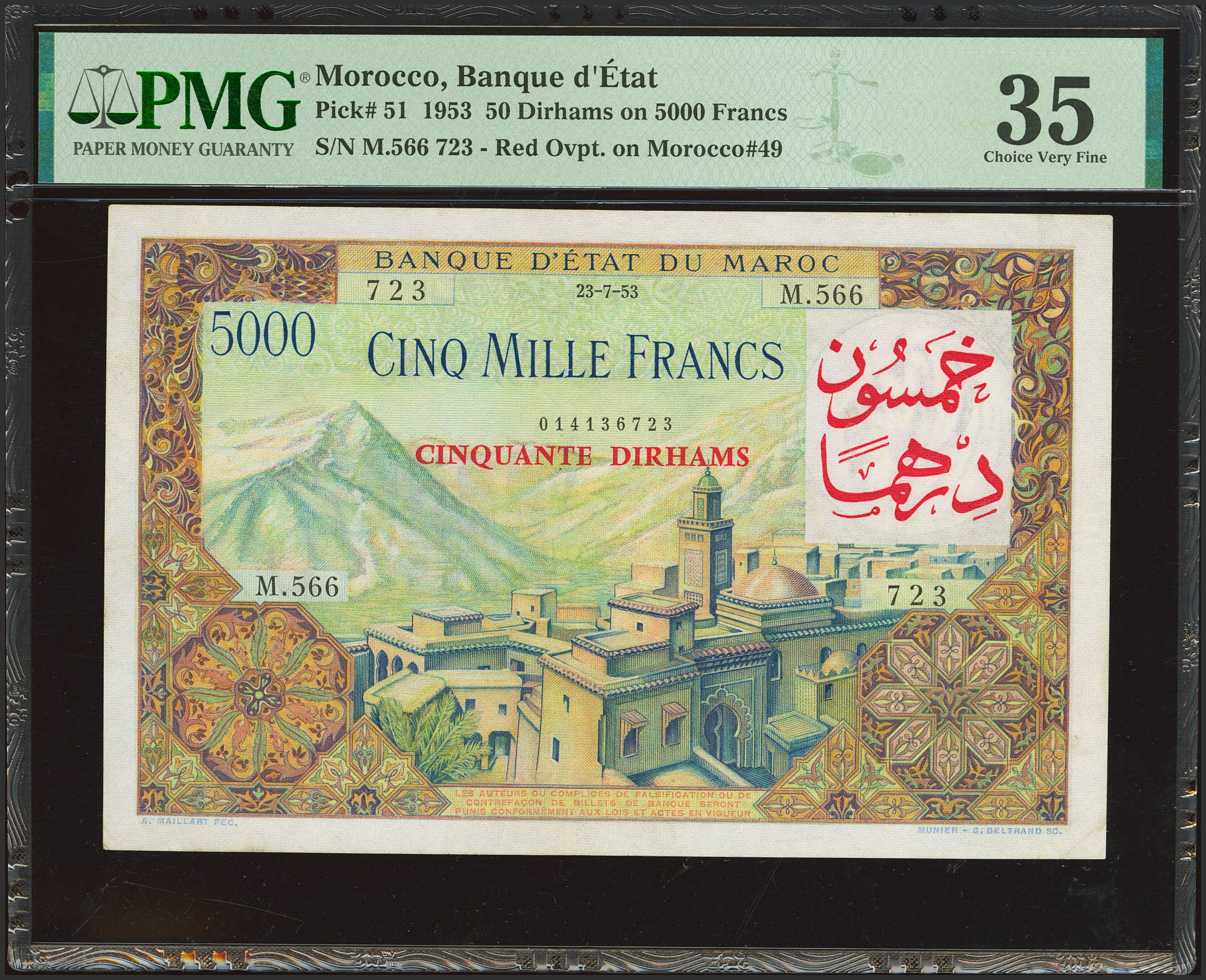 MOROCCO. 5000 Francs. 23 July 1953. Banque d'Etat du Maroc. (Pick: 51). PMG35.