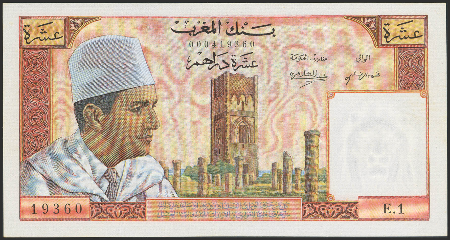 MOROCCO. 10 Dirhams. (1960ca). Banque du Maroc. (Pick: 54a). More than Extremely Fine.