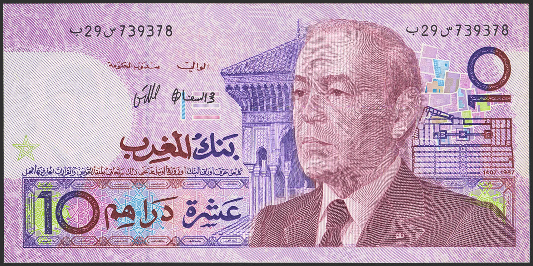 MOROCCO. 10 Dirhams. 1987. Bank Al-Maghrib. (Pick: 63a). Less than Uncirculated.
