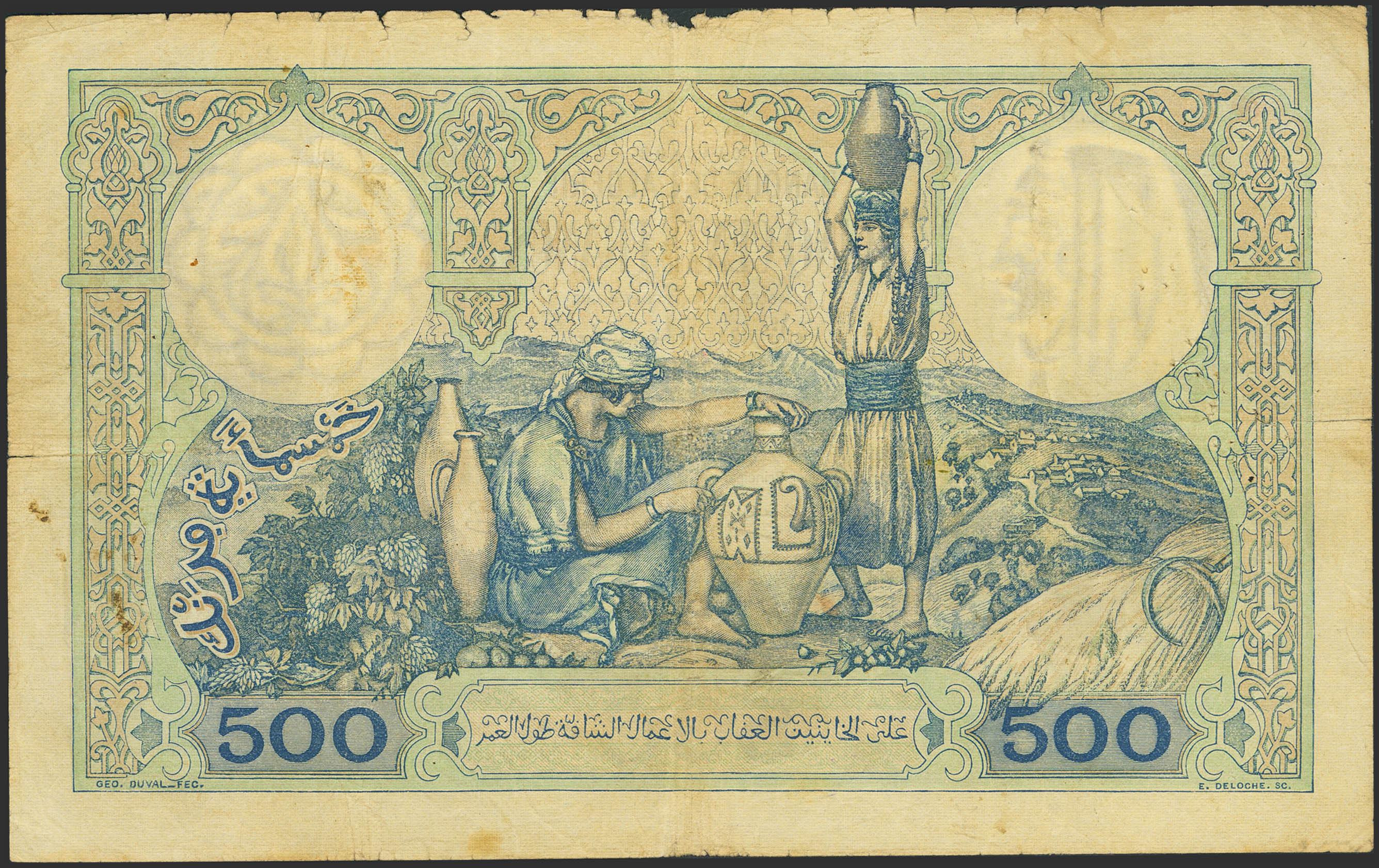 ALGERIA. 500 Francs. 3 July 1926. Banque de l'Algerie. (Pick: 82). Nicks, tears and pinholes. More than Fine.