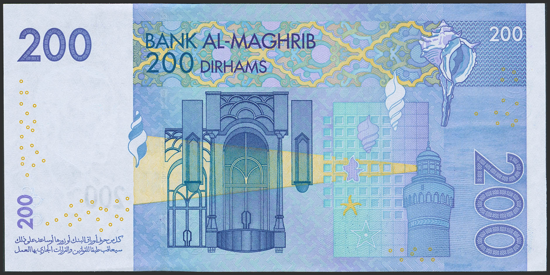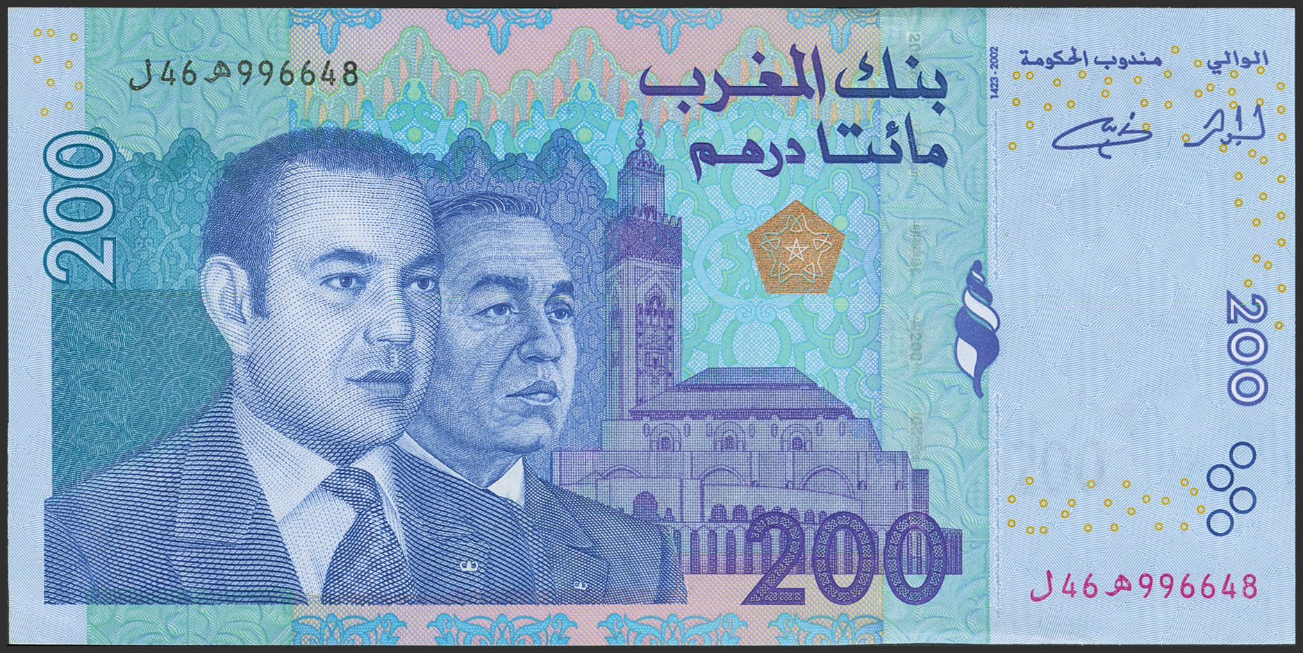 English MOROCCO. 200 Dirhams. 2002. Bank Al-Maghrib. (Pick: 71). Less than Uncirculated.