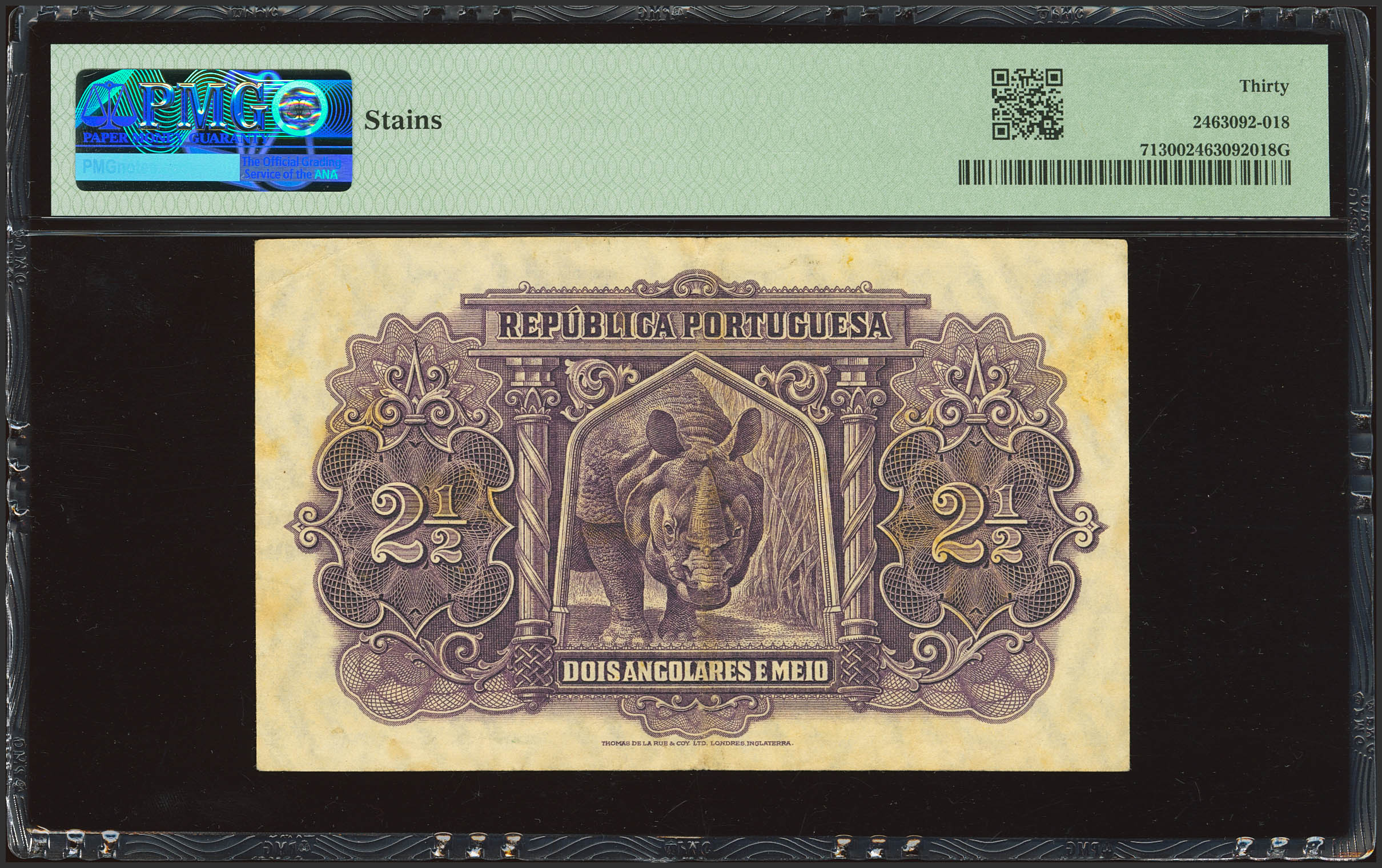 ANGOLA. 2.5 Angolars. 6 October 1948. General Government of Angola. (Pick: 71). PMG30 (stains).