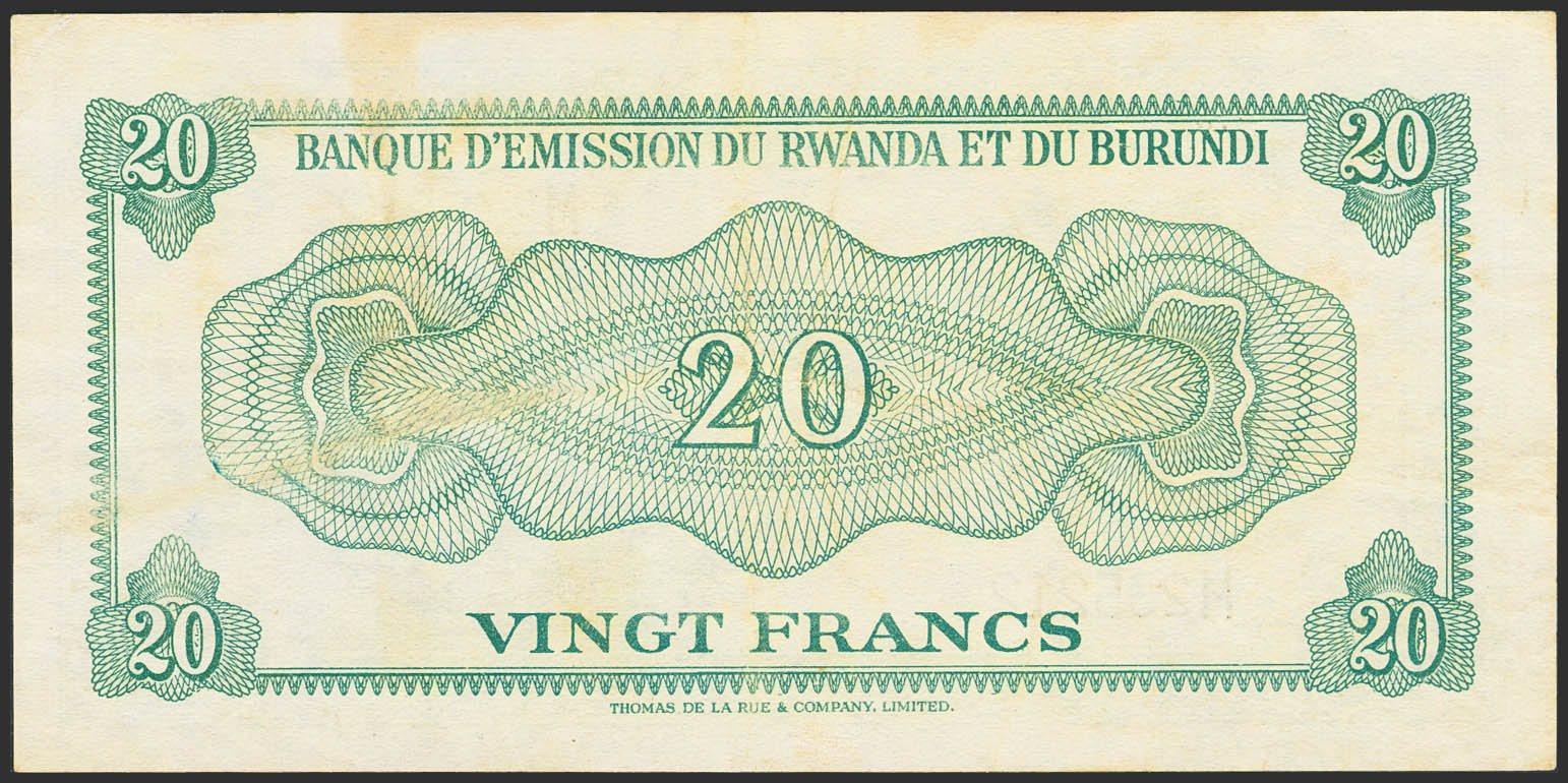 RWANDA-BURUNDI. 20 Francs. 15 September 1960. Banque d'Emission. (Pick: 3a). Extremely Fine.