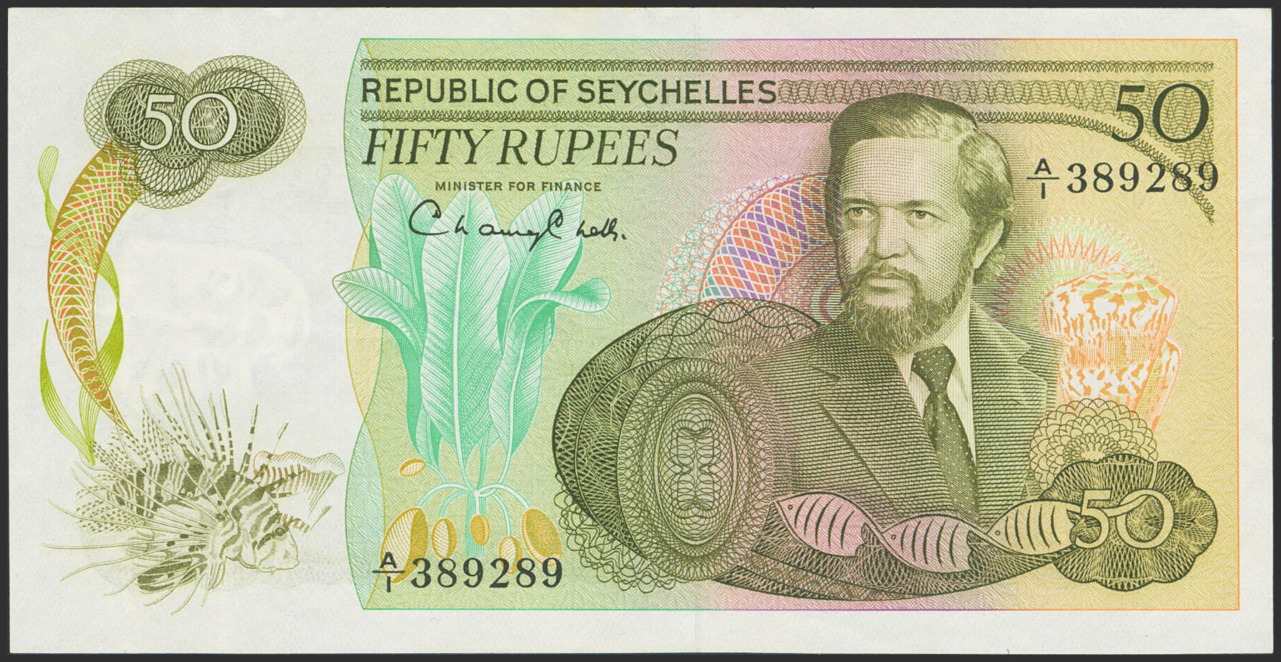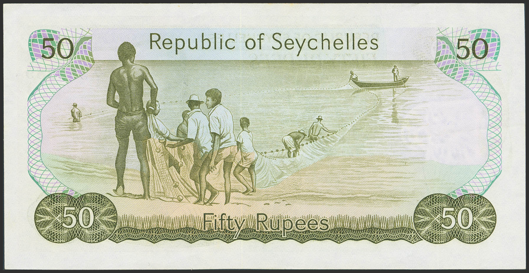 English SEYCHELLES. 50 Rupees. (1977ca). Republic. (Pick: 21). Extremely Fine.