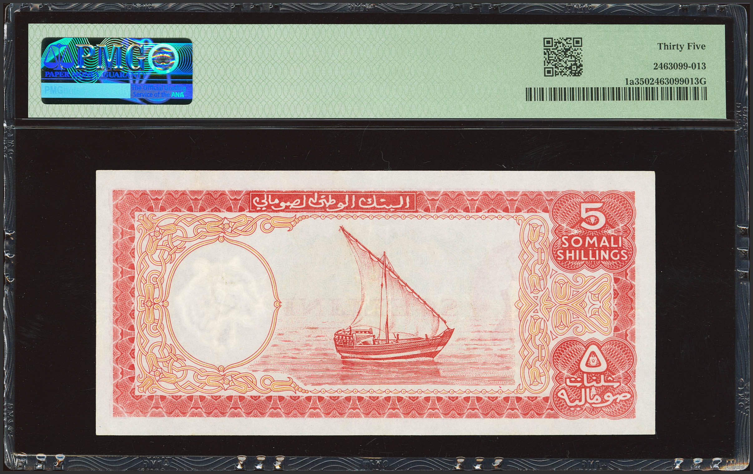 English SOMALIA. 5 Shillings. 1962. National Bank. (Pick: 1a). PMG35.