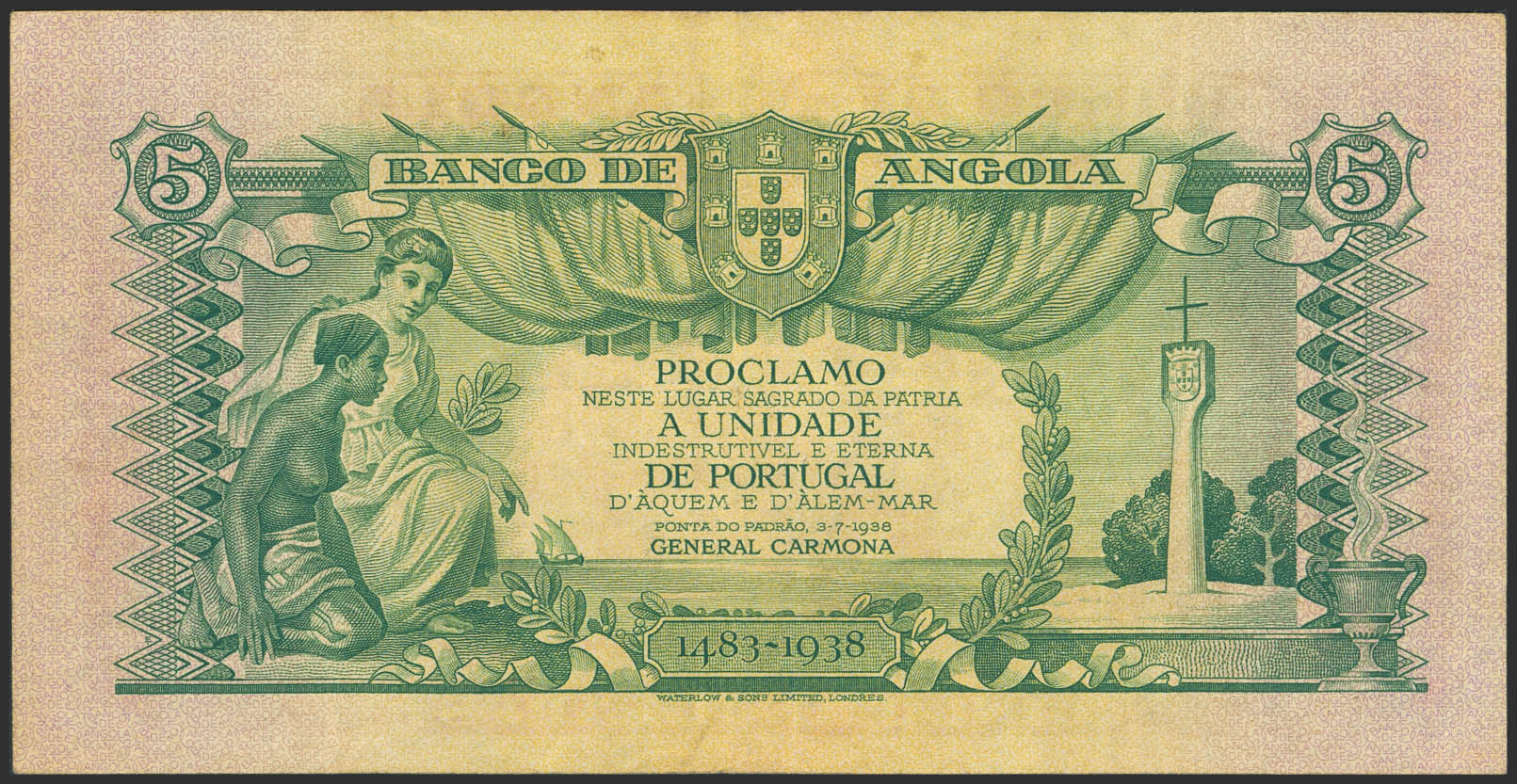 ANGOLA. 5 Angolans. 1 January 1947. Bank of Angola. (Pick: 77). More than Very Fine.