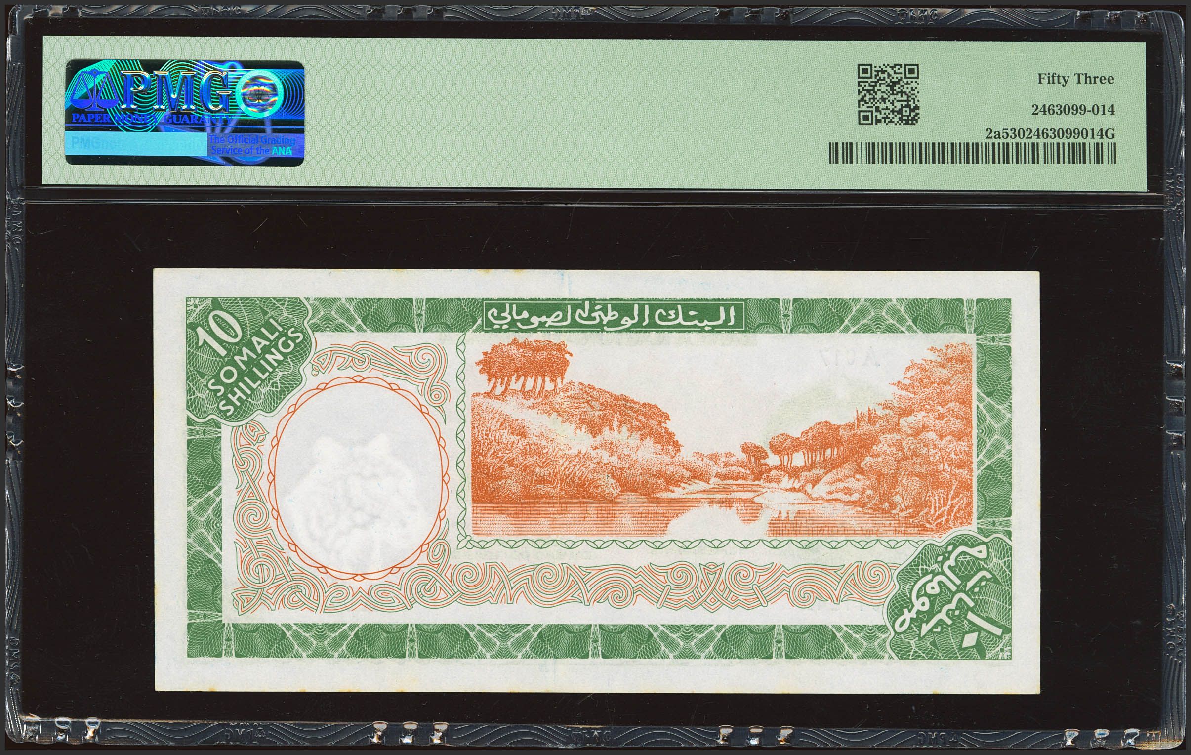 English SOMALIA. 10 Shillings. 1962. National Bank. (Pick: 2a). PMG53.