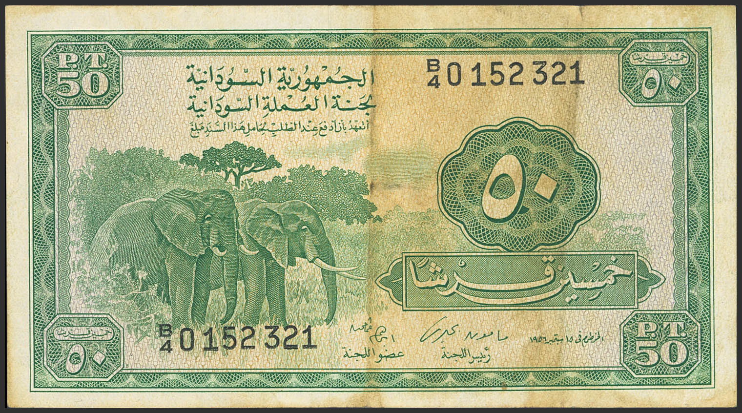 SUDAN. 50 Piastres. 1956. Currency Board. (Pick: 2A). Dirty. More than Very Fine.